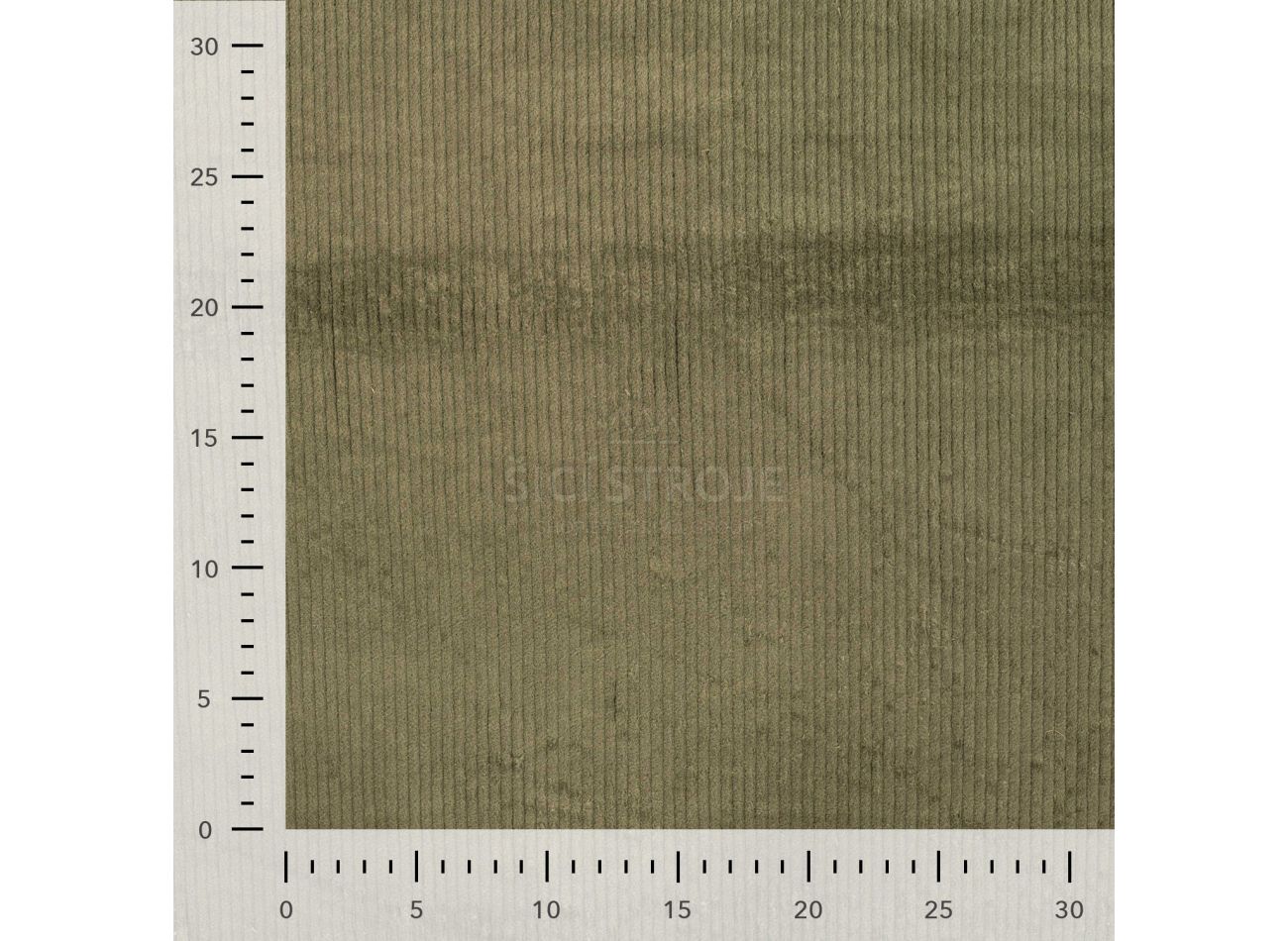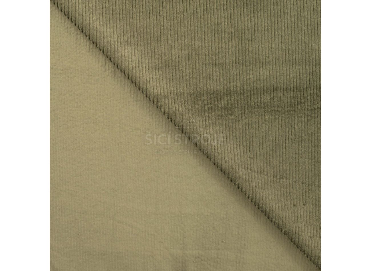 6 Wales Corduroy, 95% bavlna, 5% elastan, minimálna šírka 125 cm, gramáž 345 g/m2, farba khaki