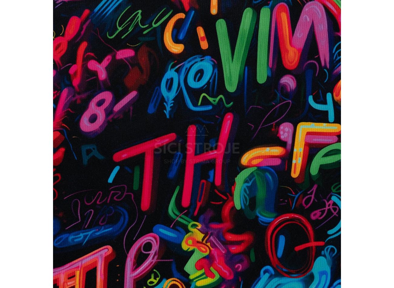Alpenfleece Digital Print, 60% polyester, 36% bavlna, 4% elastan, minimálna šírka 145 cm, gramáž 380 g/m2, vzor graffiti, farba multicolor