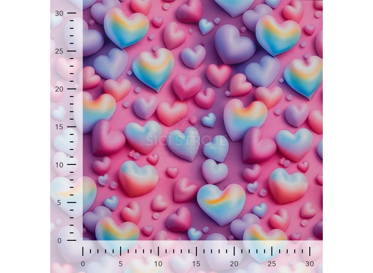 Alpenfleece Digital Print, 60% polyester, 36% bavlna, 4% elastan, minimálna šírka 145 cm, gramáž 380 g/m2, vzor hearts, farba pink