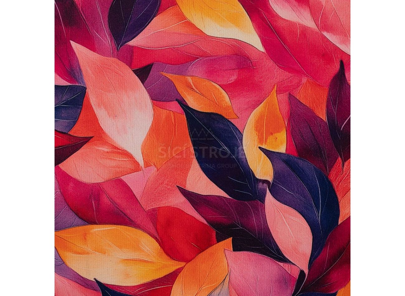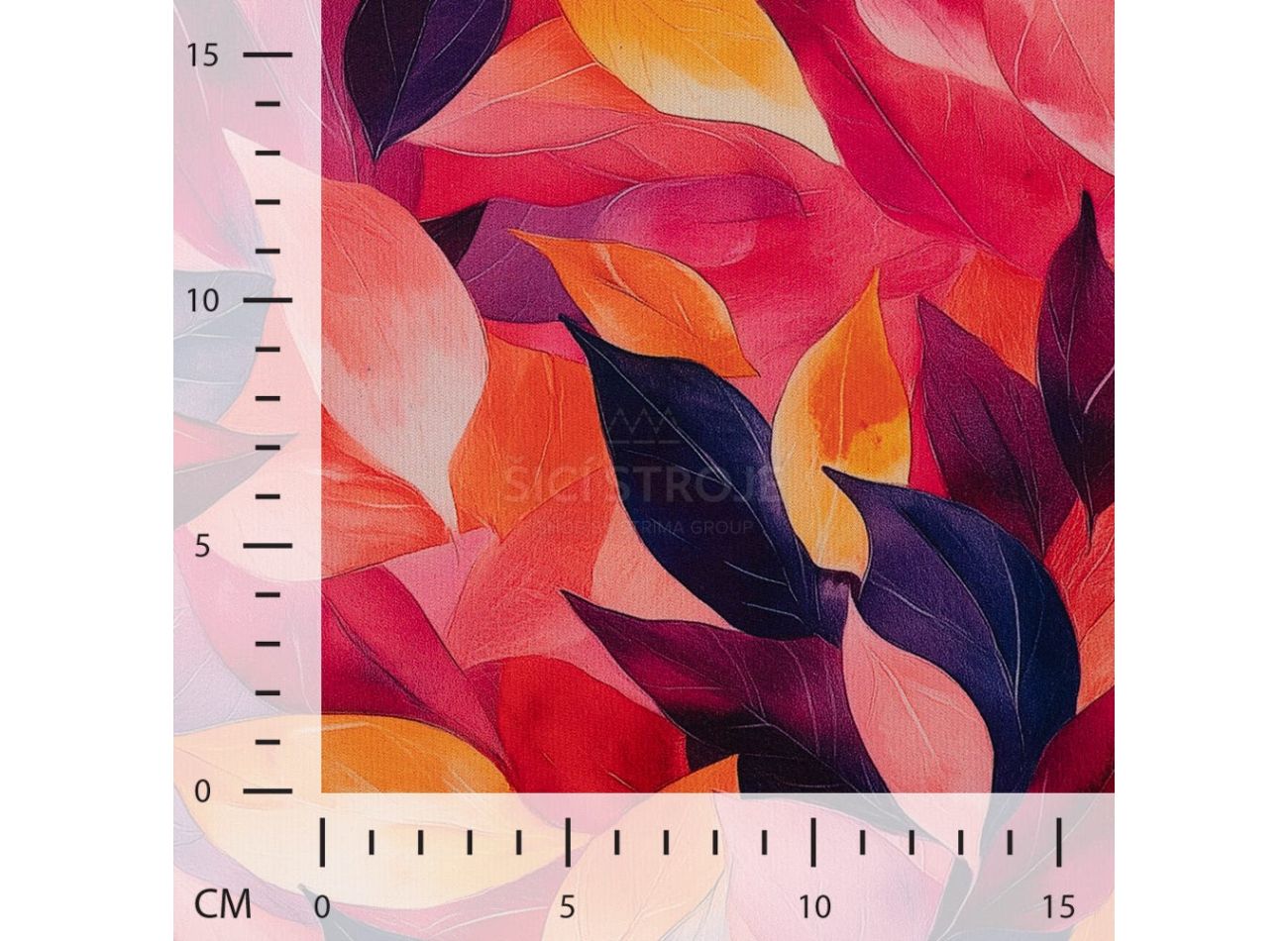 Alpenfleece Digital Print, 60% polyester, 36% bavlna, 4% elastan, minimálna šírka 145 cm, gramáž 380 g/m2, vzor leaves, farba coral