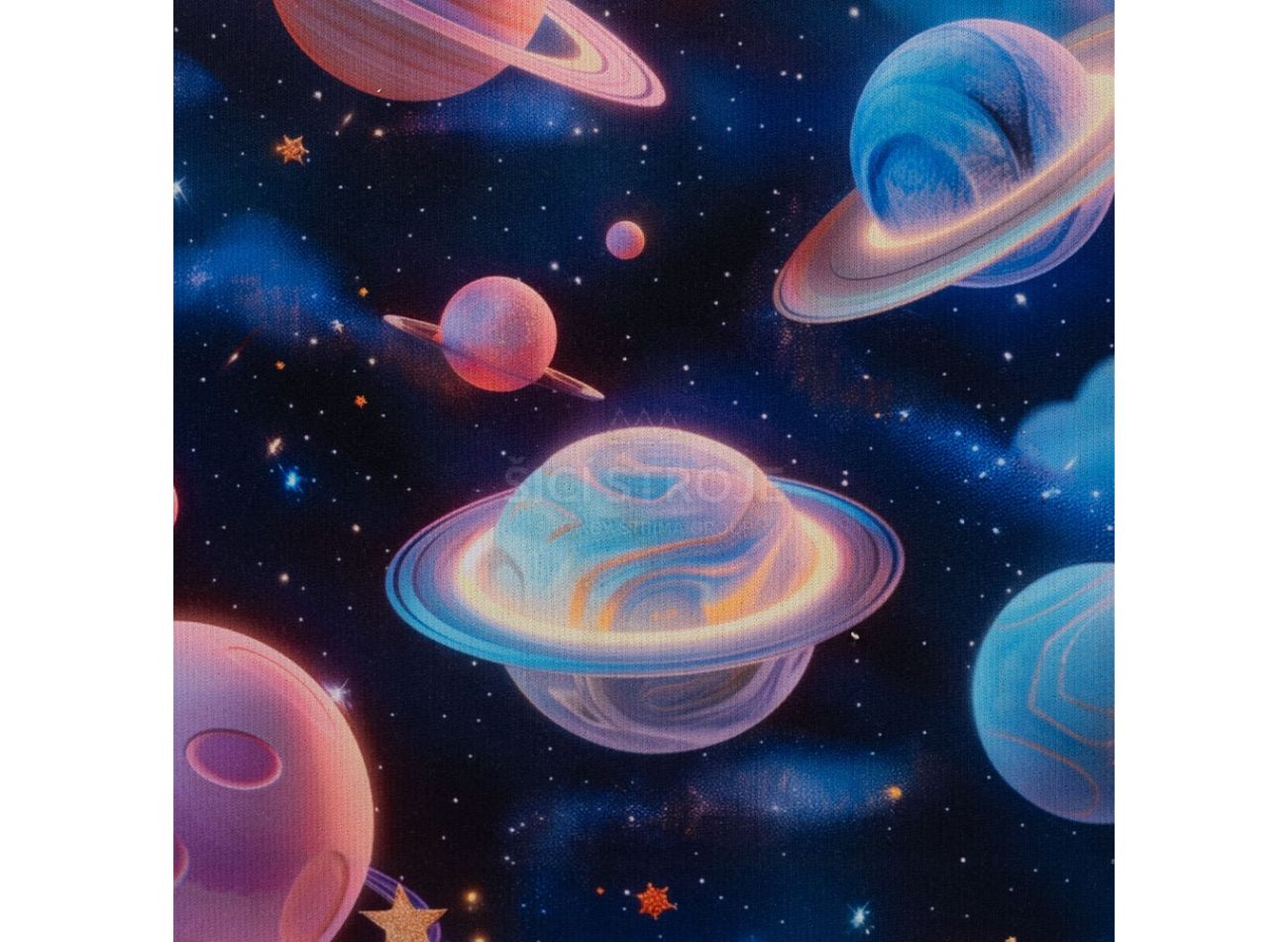 Alpenfleece Digital Print, 60% polyester, 36% bavlna, 4% elastan, minimálna šírka 145 cm, gramáž 380 g/m2, vzor space, farba navy