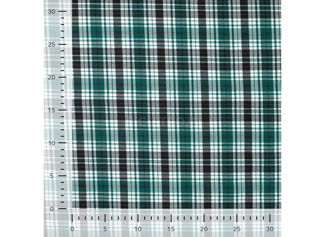Bengaline Check, 75% viskóza, 17% polyester, 5% polyamid, 3% elastan, minimálna šírka 142 cm, gramáž 250 g/m2, vzor checks, farba petrol