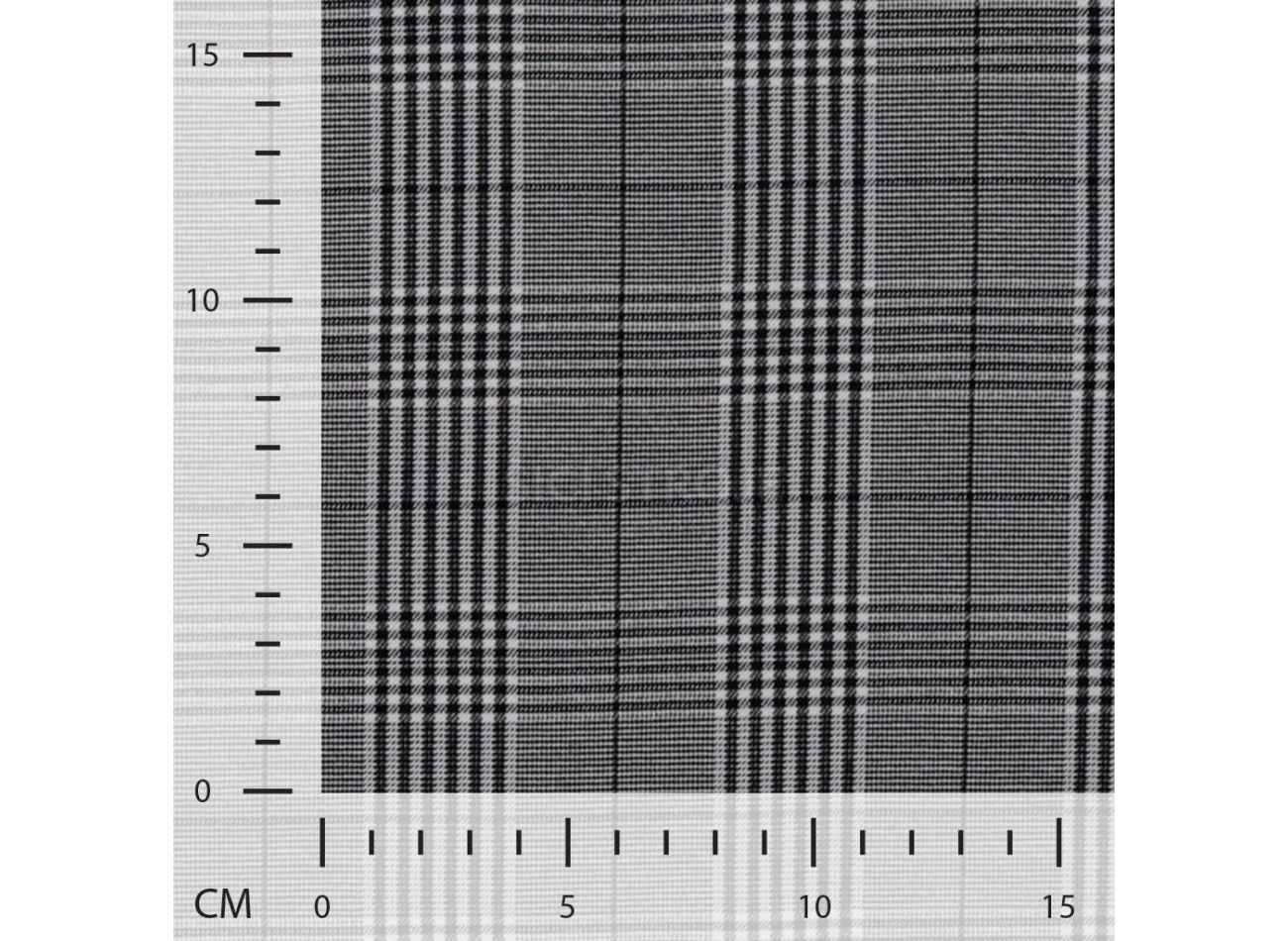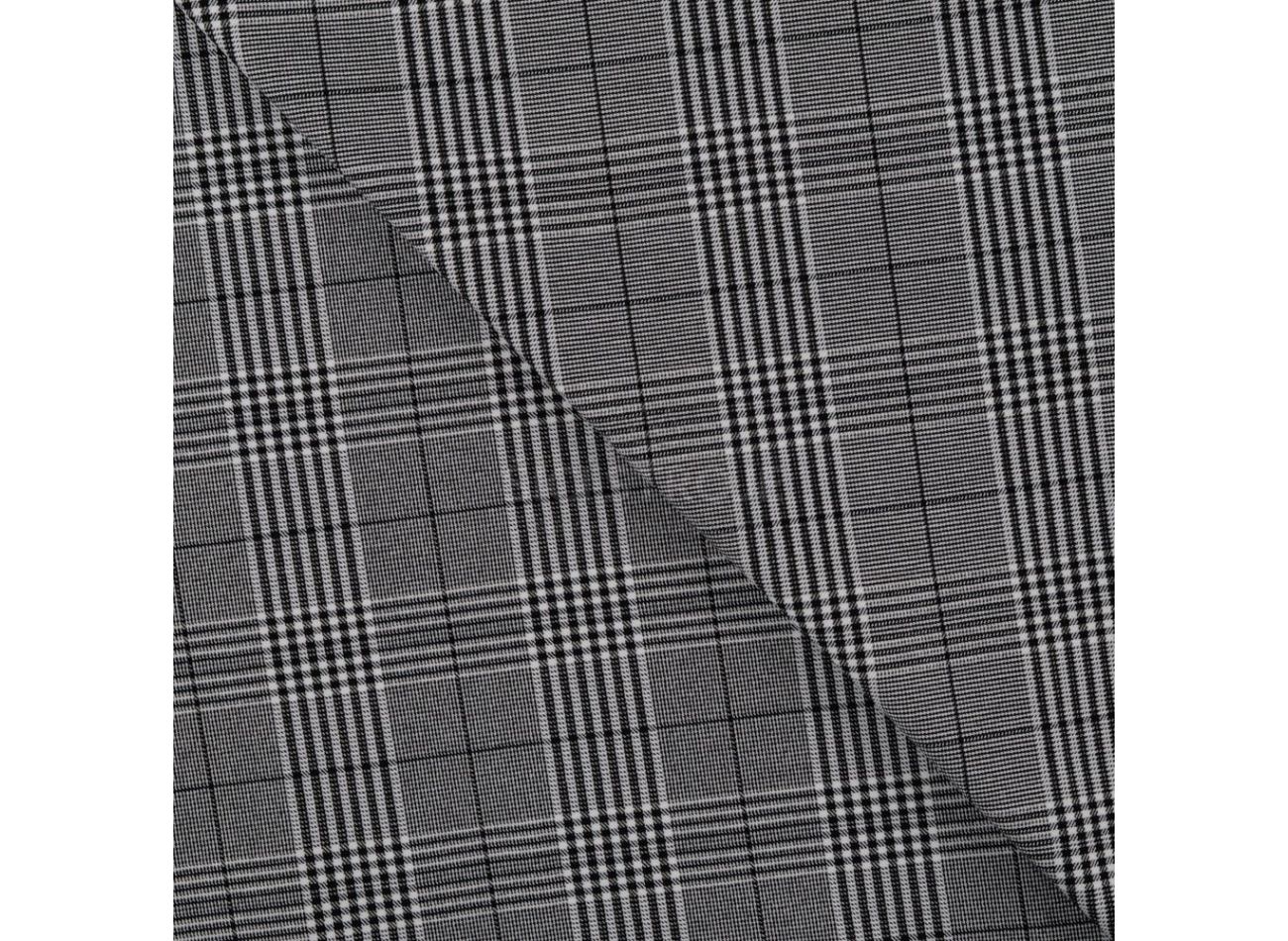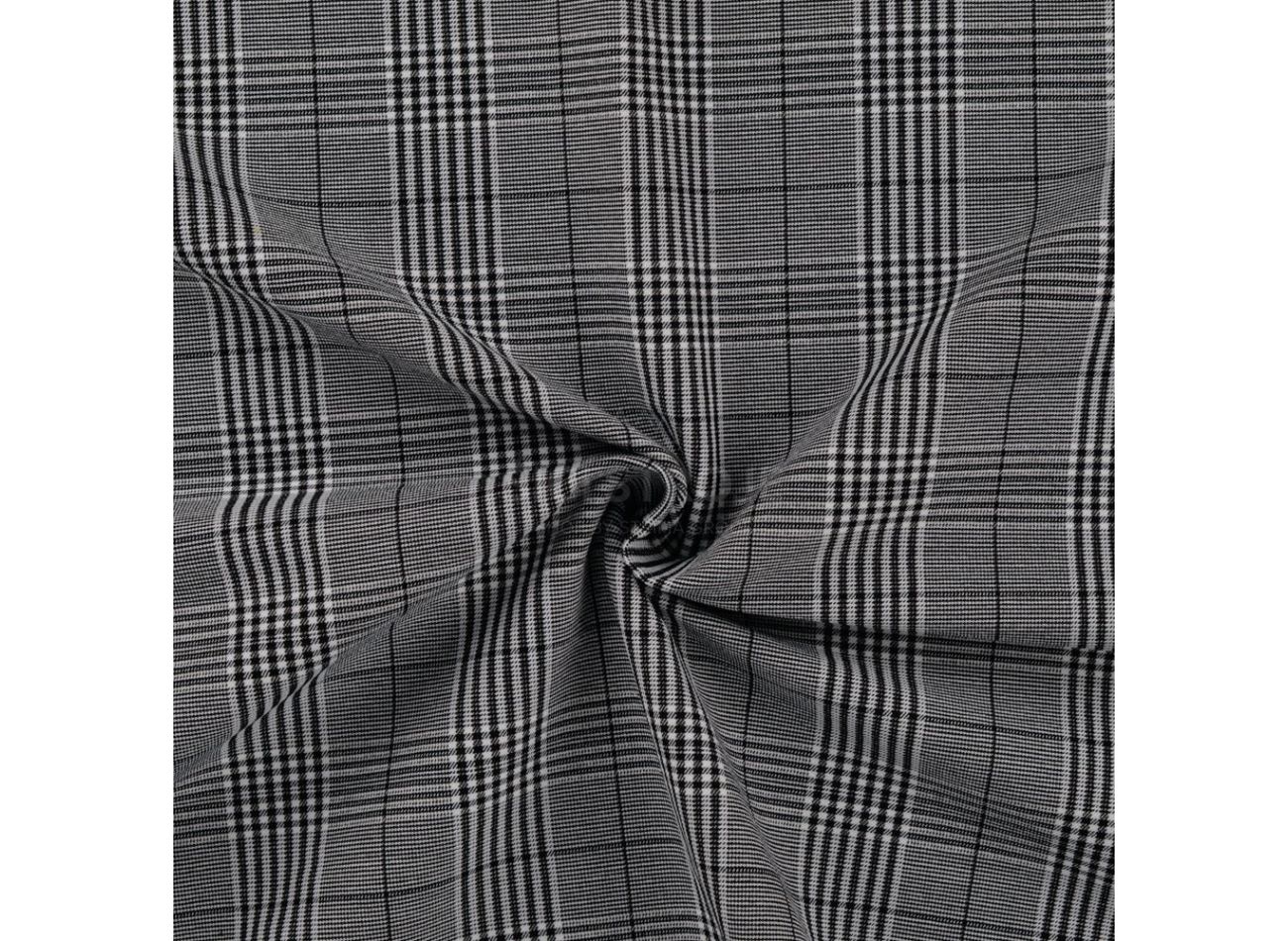 Bengaline Check Feona, 75% viskóza, 17% polyester, 5% polyamid, 3% elastan, minimálna šírka 142 cm, gramáž 250 g/m2, farba black/white