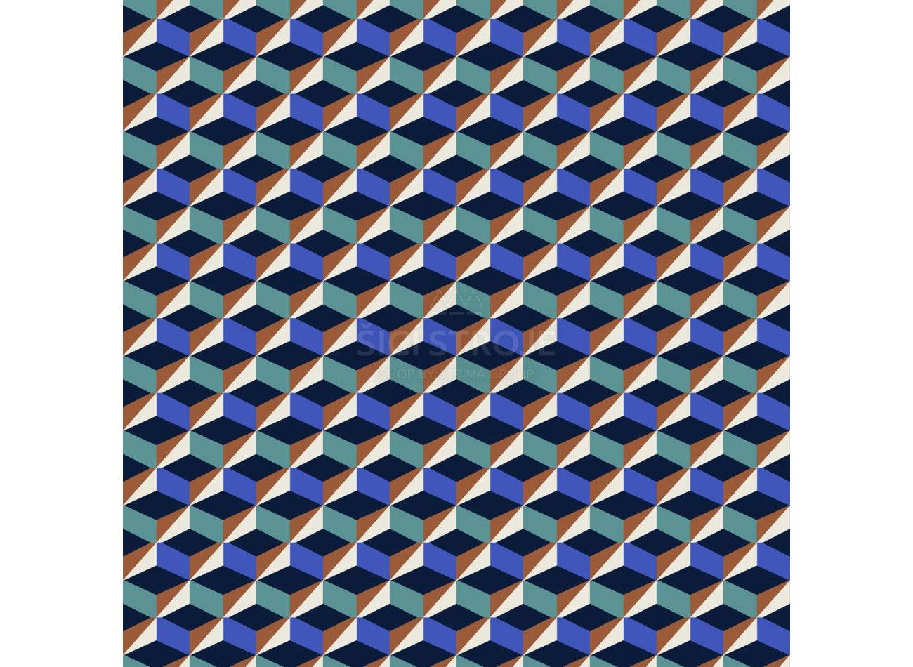 Bengaline Print, 73% viskóza, 24% polyamid, 3% elastan, minimálna šírka 145 cm, gramáž 240 g/m2, vzor graphic cubes, farba cognac