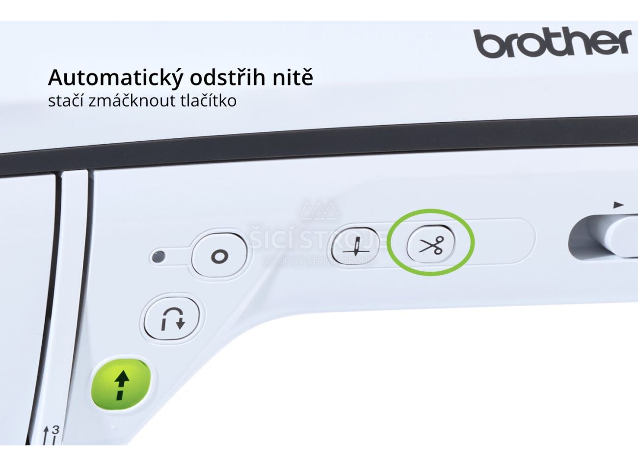 Chcete šiť bez pedála? Nie je problém - s nastaviteľným posuvníkom regulácie rýchlosti je to hračka - stačí stlačiť tlačidlo Štart/Stop a šiť. Táto funkcia vám tiež zjednoduší navíjanie spodných cievok a šitie gombíkových dierok. Už nebudete musieť šliapať na pedál. Šitie urýchľuje aj návyková funkcia automatický odstrih nite - kedy po automatickom zapošití stroj sám prevlečie obe nite do rubu a tam ich odstrihne asi na 2 cm. Už nebudete mať pri šití cucky niťou!