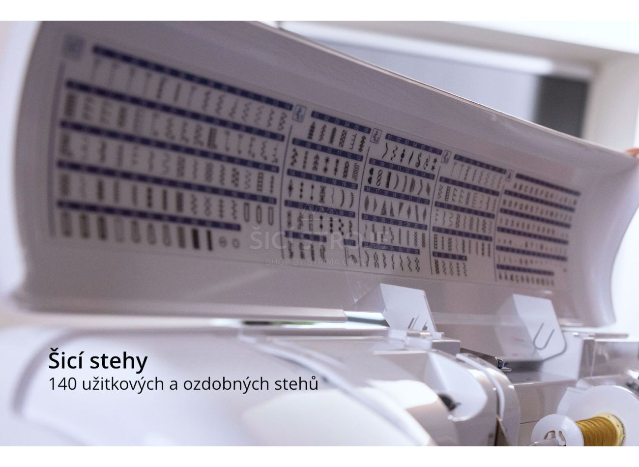 Šijací stroj Brother NV1150 ponúka 140 druhov stehov vr. overlockových a dekoračných s možnosťou tvorby stehov vlastných, 10 typov automatické gombíkové dierky šité na 1 krok.