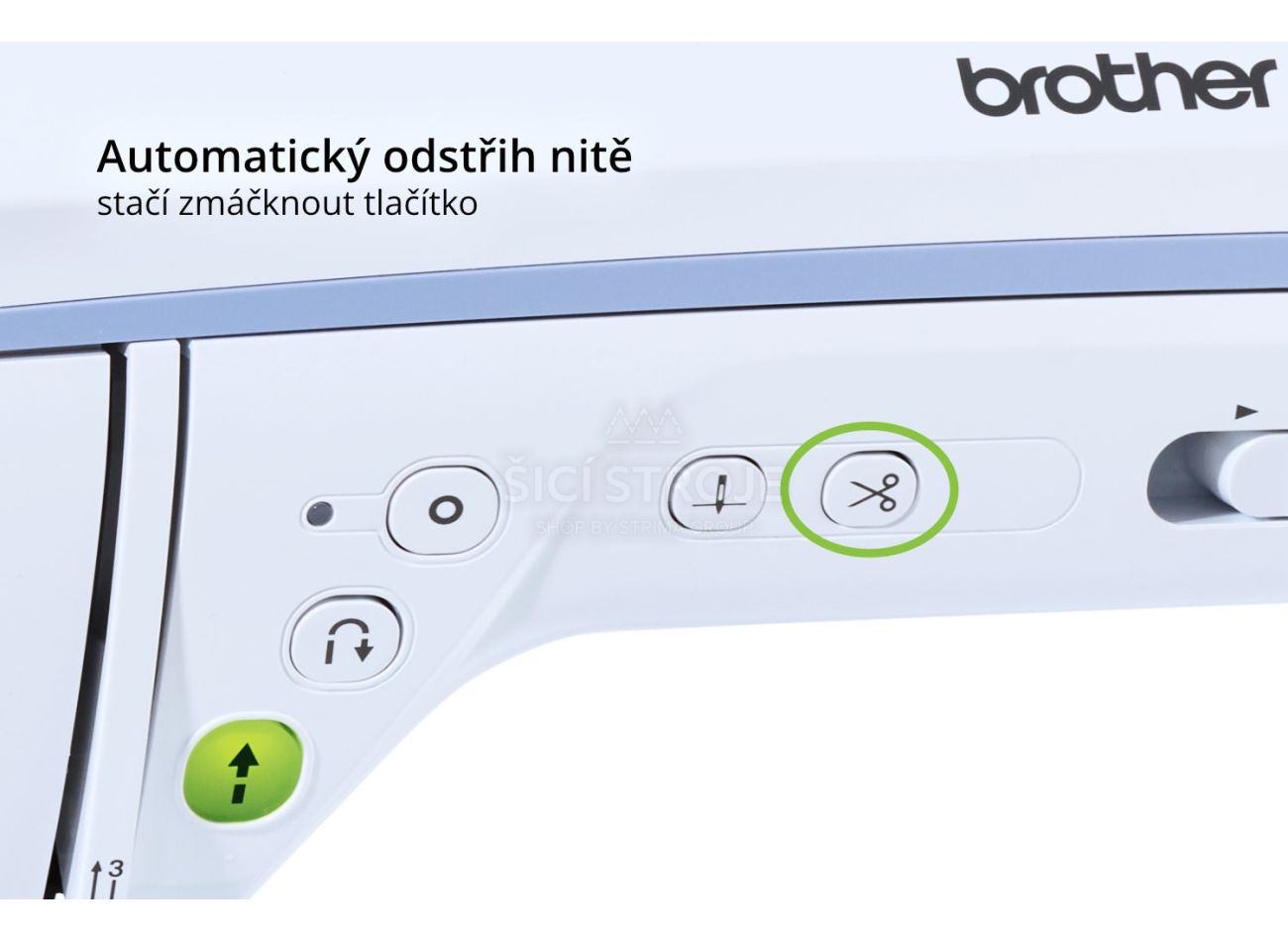 Chcete šiť bez pedála? Nie je problém - s nastaviteľným posuvníkom regulácie rýchlosti je to hračka - stačí stlačiť tlačidlo Štart/Stop a šiť. Táto funkcia vám tiež zjednoduší navíjanie spodných cievok a šitie gombíkových dierok. Už nebudete musieť šliapať na pedál. Šitie urýchľuje aj návyková funkcia automatický odstrih nite - kedy po automatickom zapošití stroj sám prevlečie obe nite do rubu a tam ich odstrihne asi na 2 cm. Už nebudete mať pri šití cucky niťou!