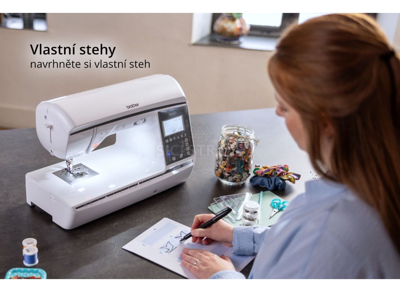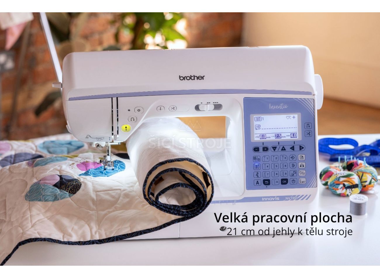 Brother Inventio NV1350 má vďaka stranovému podávaniu ozdobné stehy až 40 mm široké a zvládnete s ním zákazkové šitie aj tvorenie pre zábavu!