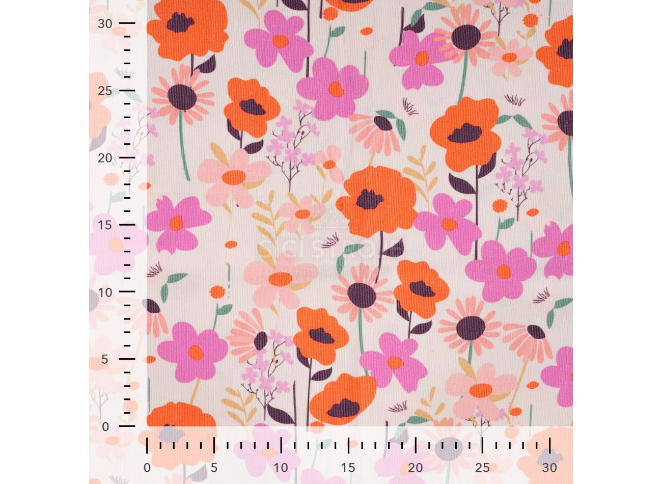 Cotton Cord Digi Print, 100% bavlna, minimálna šírka 143 cm, gramáž 150 g/m2, vzor big flo..