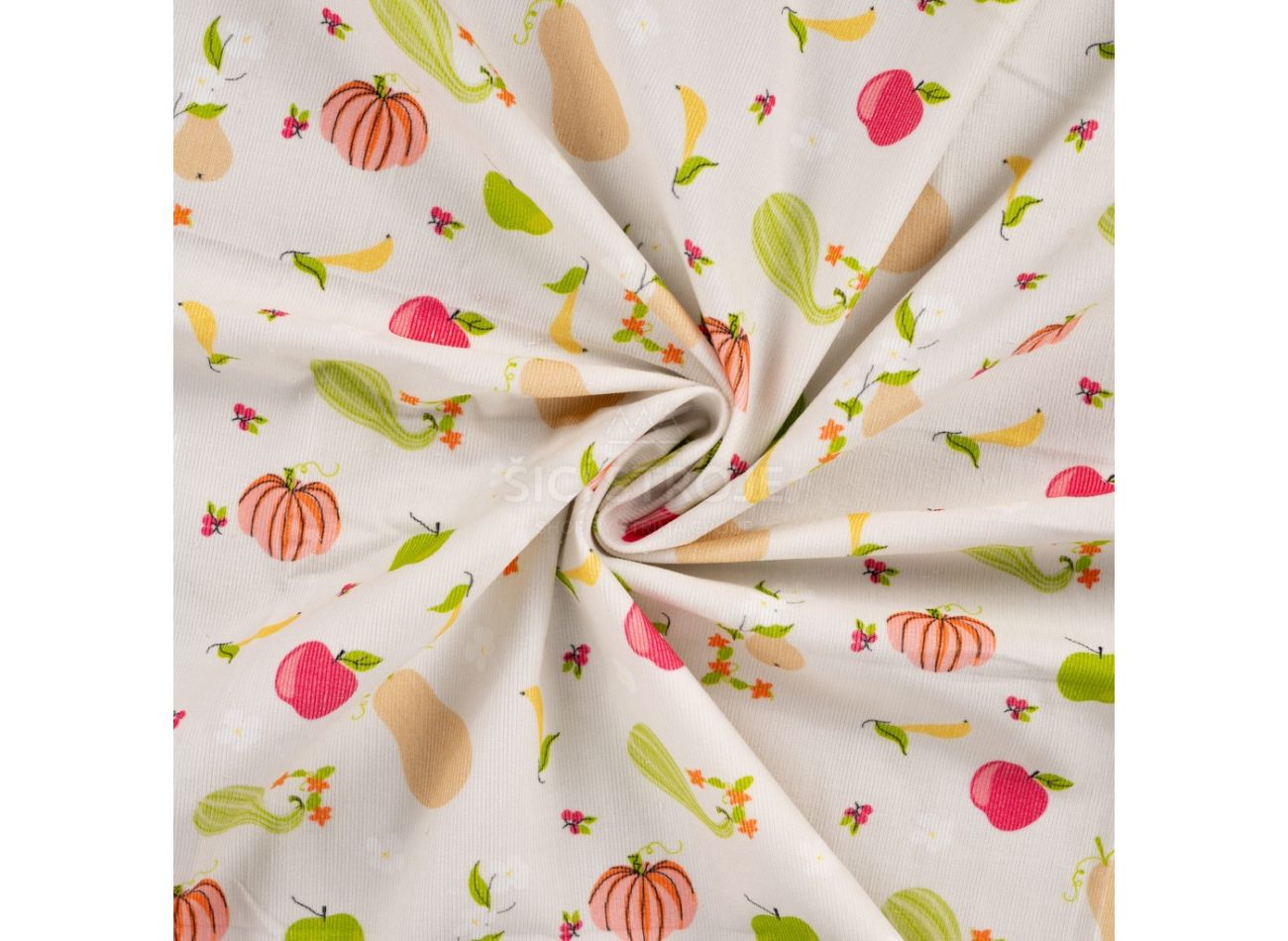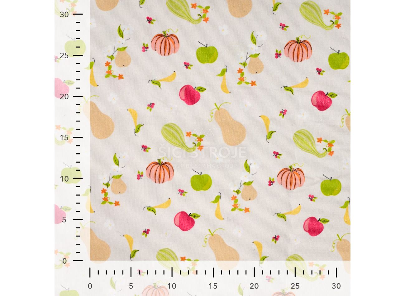Cotton Cord Digi Print, 100% bavlna, minimálna šírka 143 cm, gramáž 150 g/m2, vzor pumpkins, farba ecru