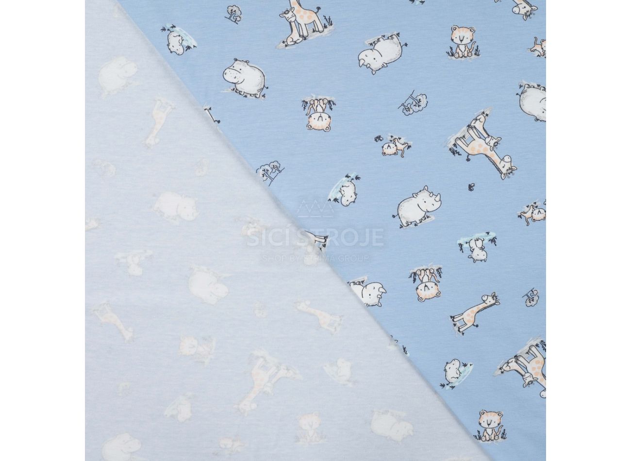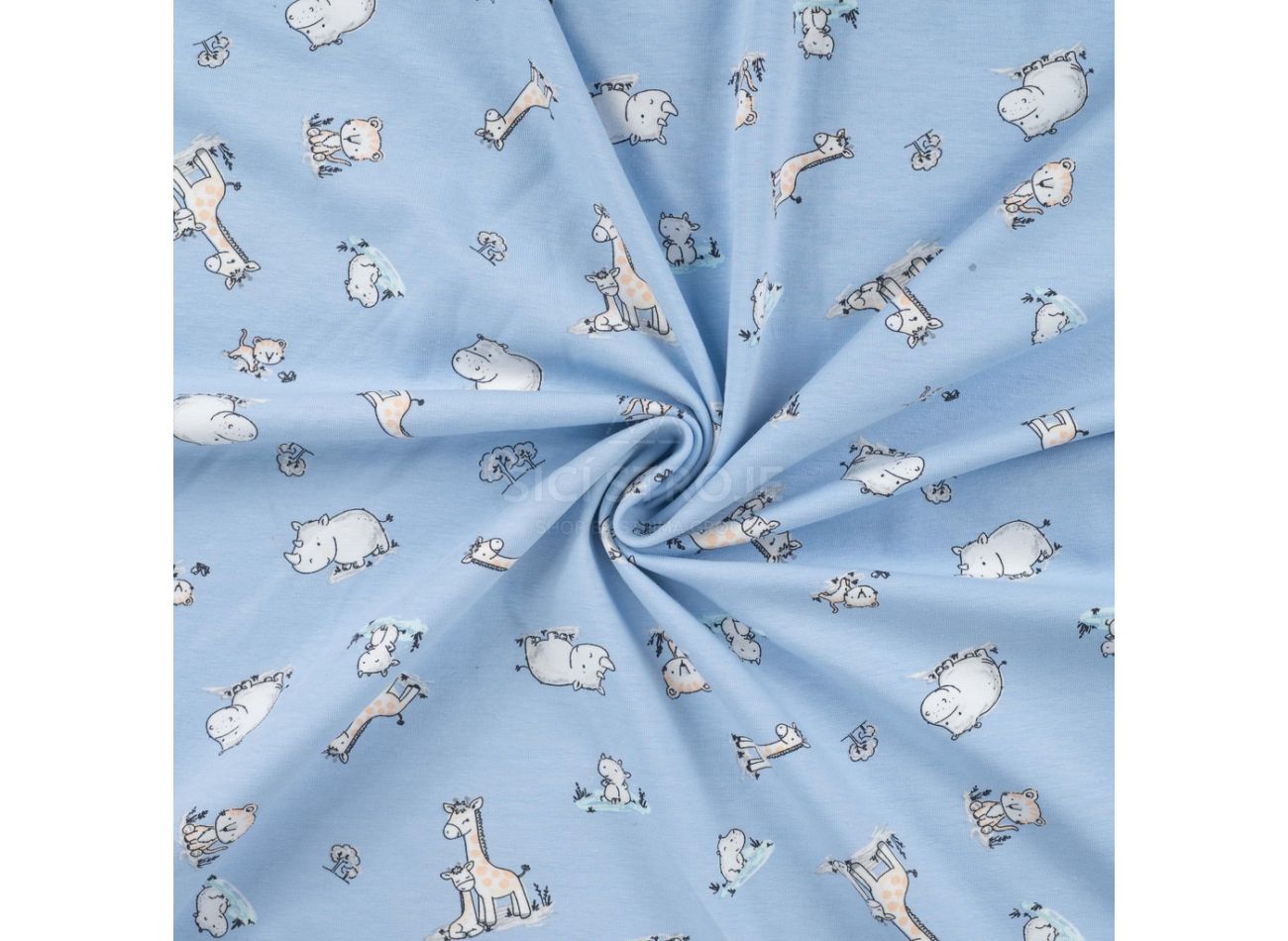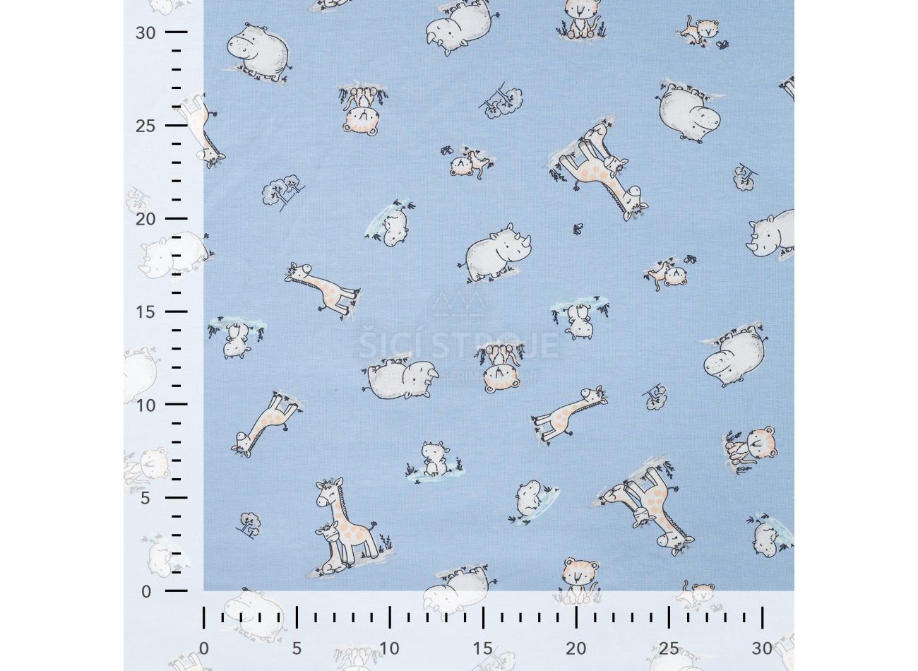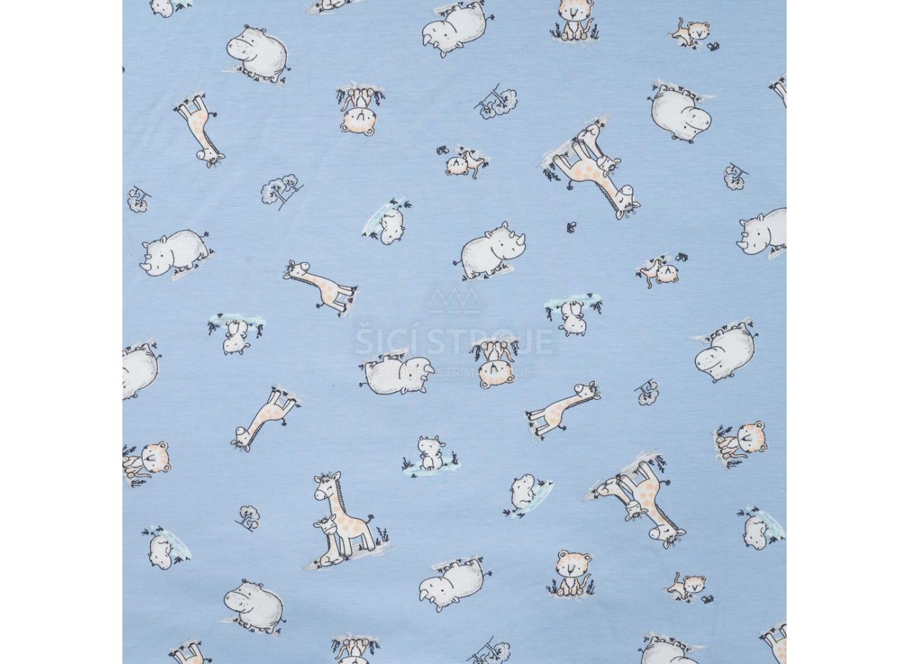 Cotton/EA Jersey, 95% bavlna, 5% elastan, minimálna šírka 145 cm, gramáž 200 g/m2, vzor baby animals, farba blue