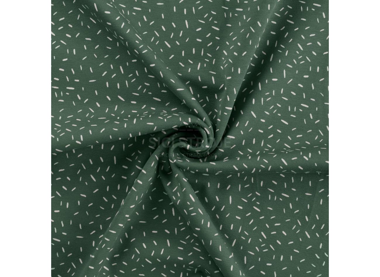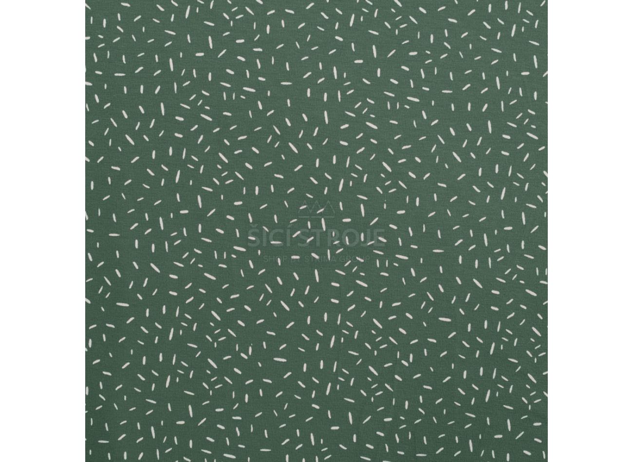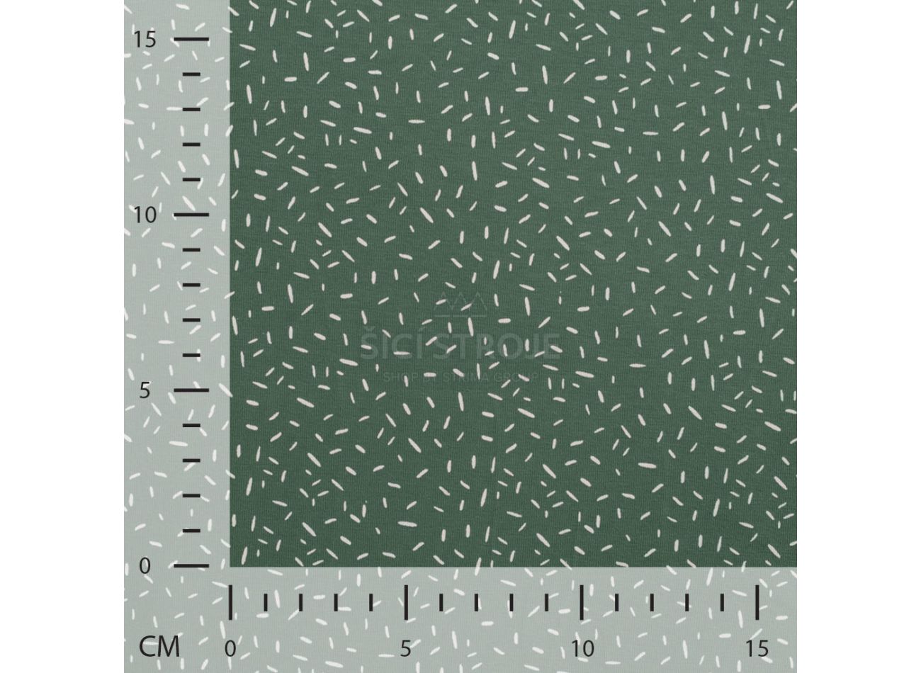 Cotton/EA Jersey, 95% bavlna, 5% elastan, minimálna šírka 145 cm, gramáž 200 g/m2, vzor confetti, farba dusty green