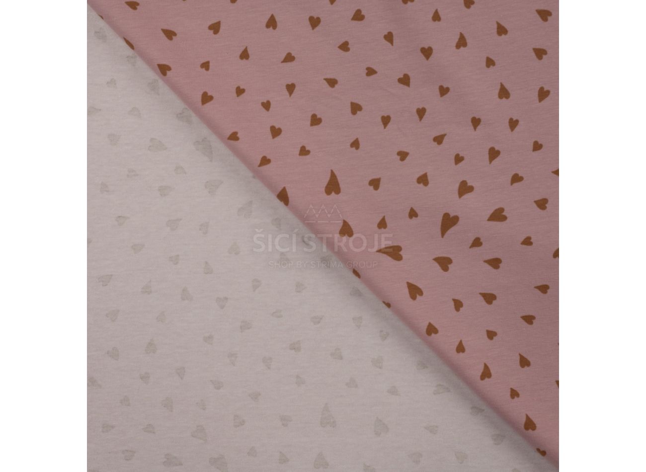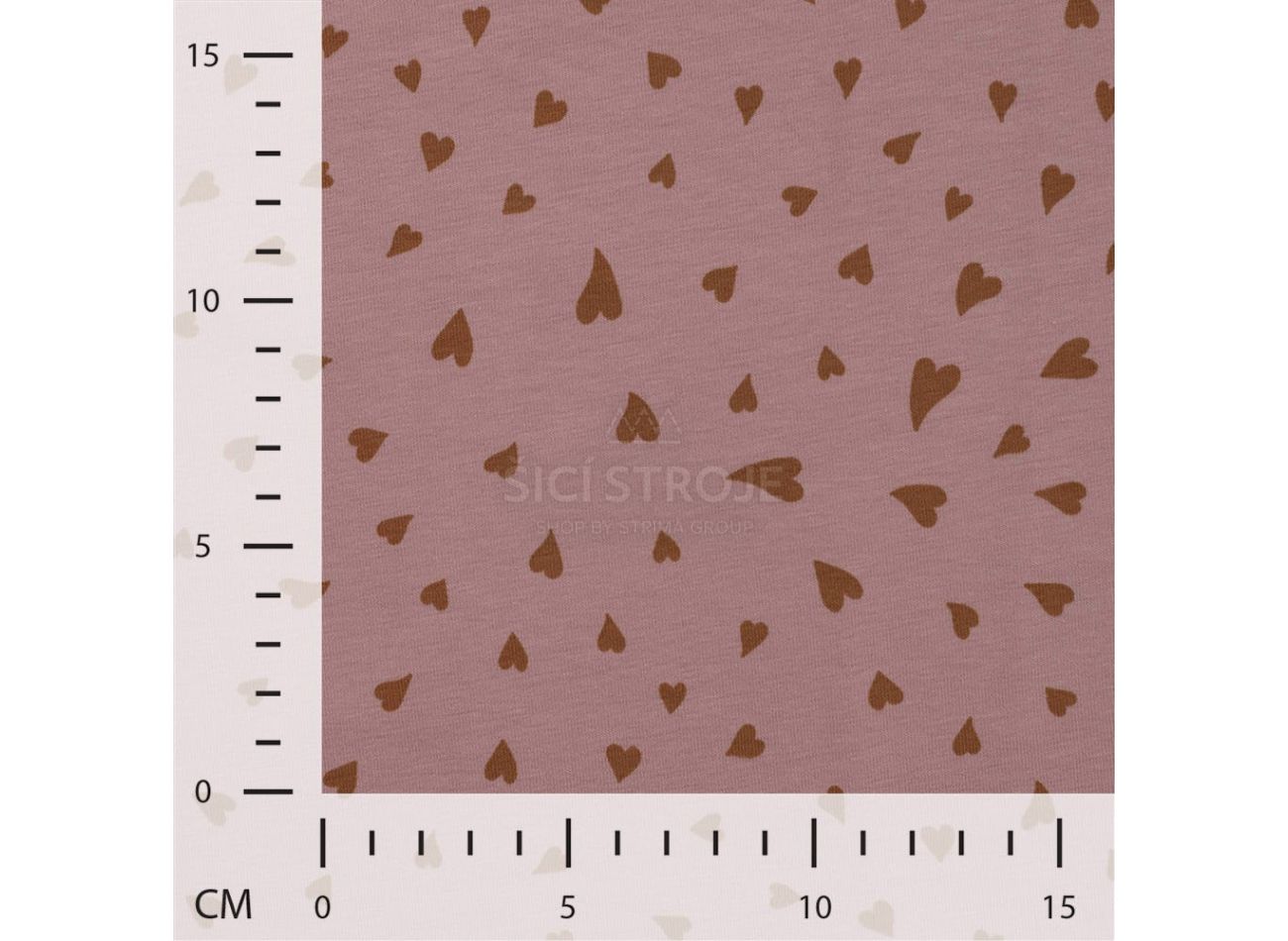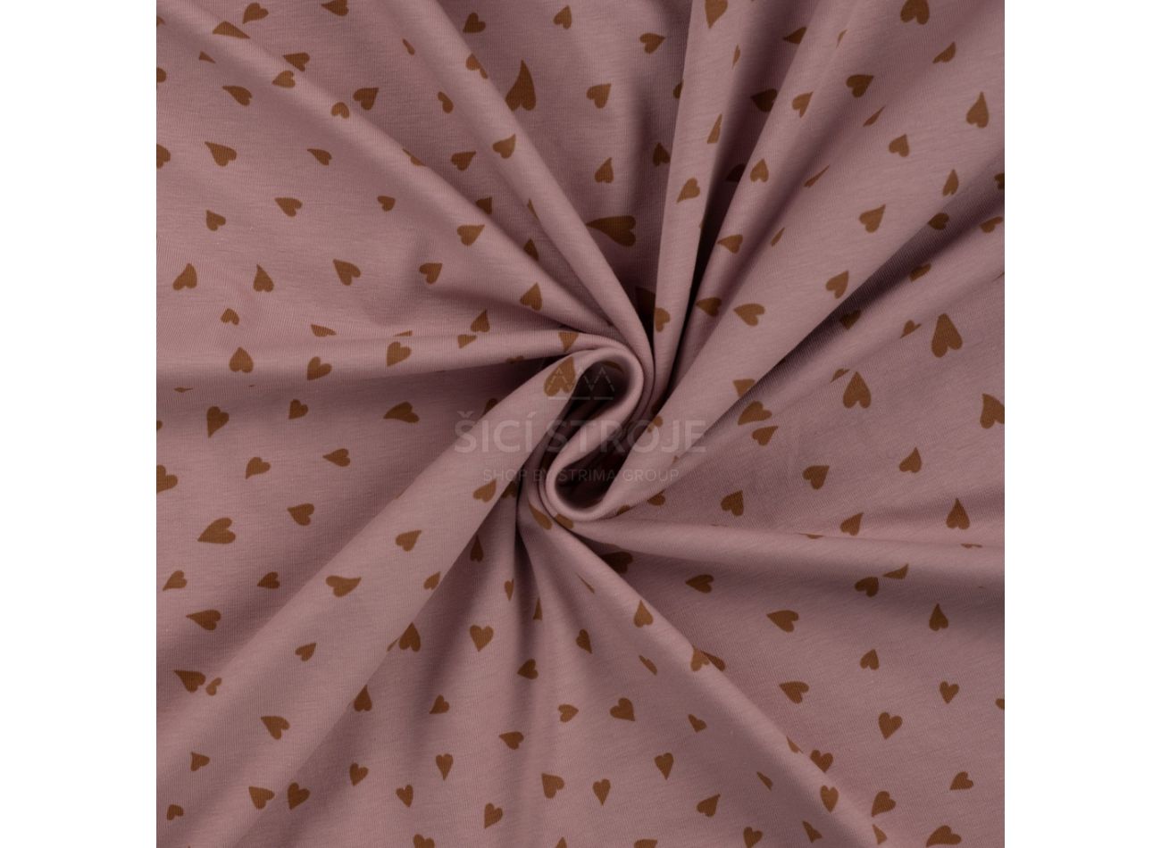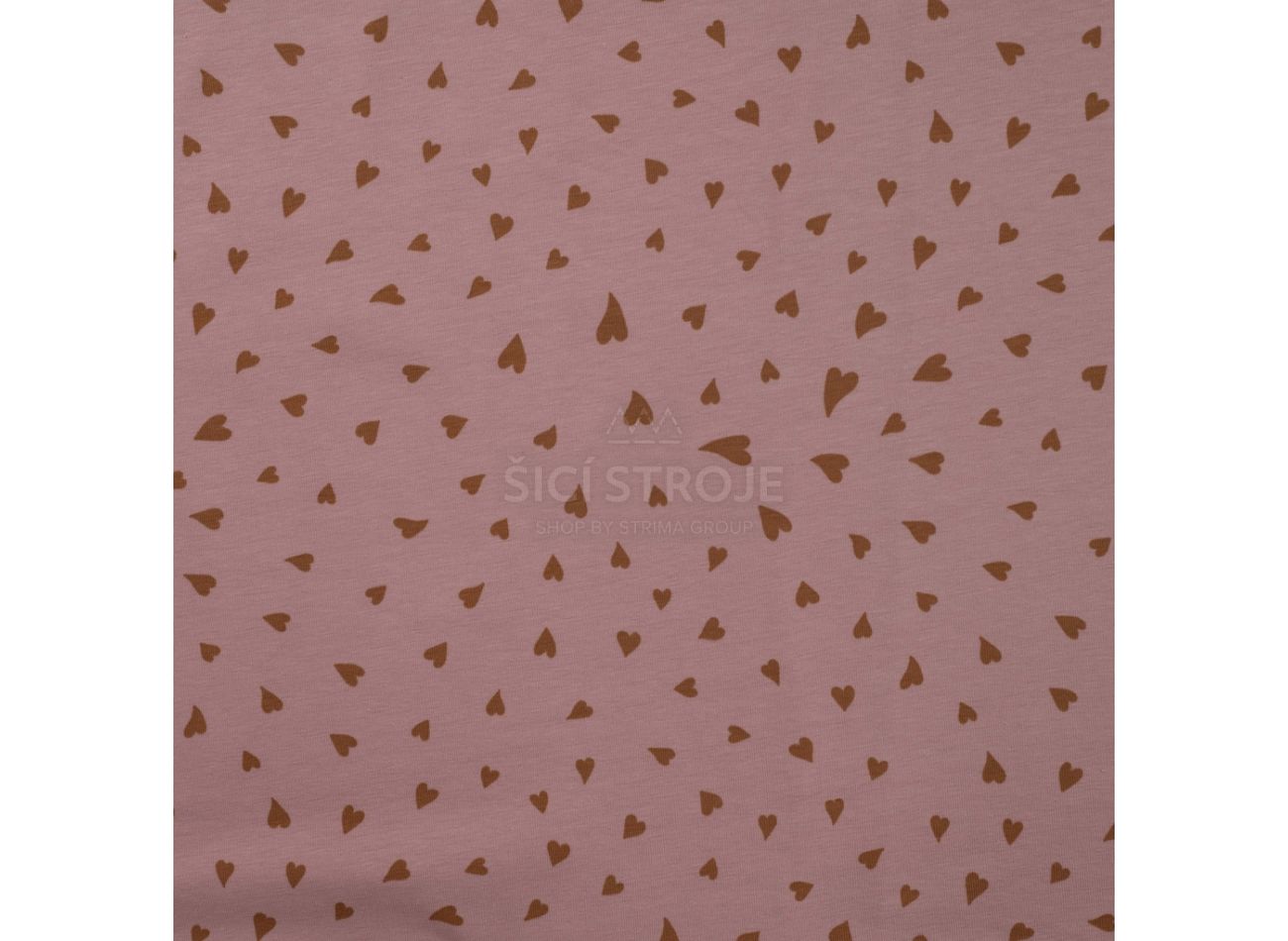 Cotton/EA Jersey, 95% bavlna, 5% elastan, minimálna šírka 145 cm, gramáž 200 g/m2, vzor hearts, farba dusty pink