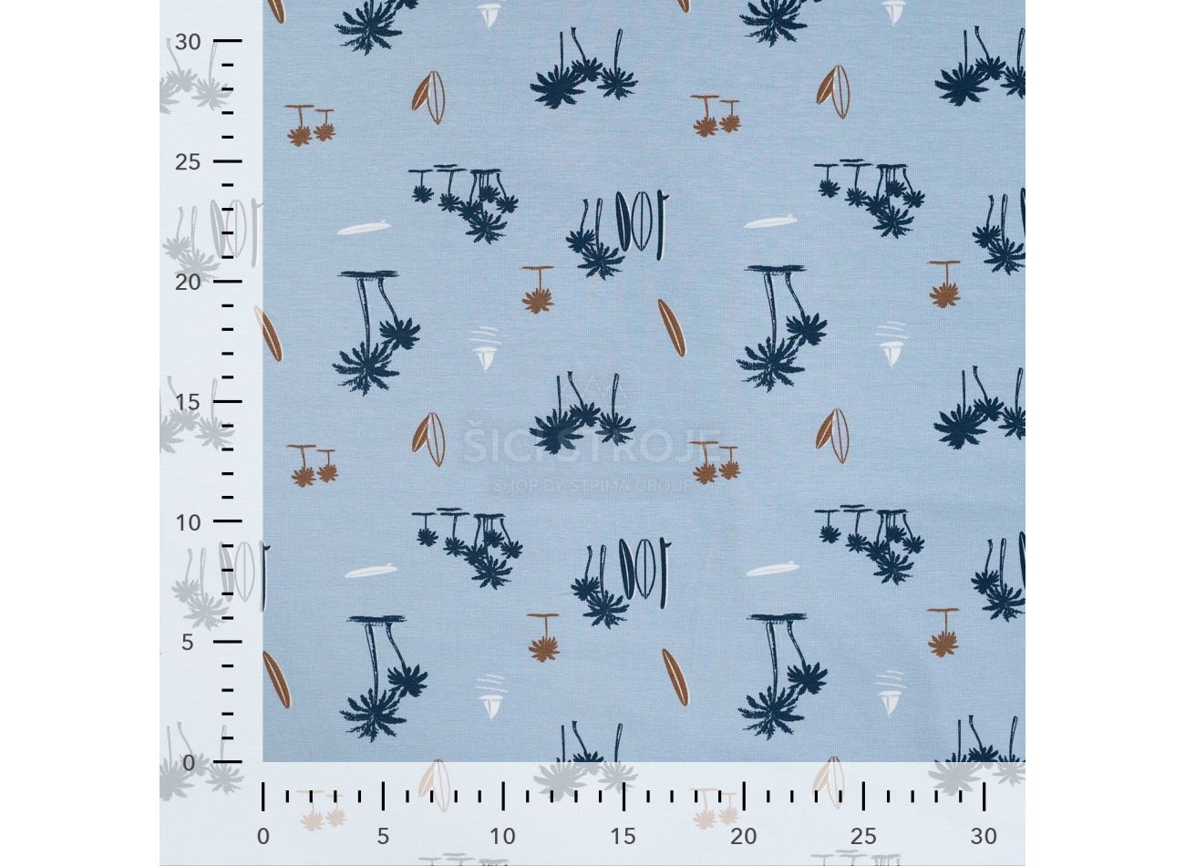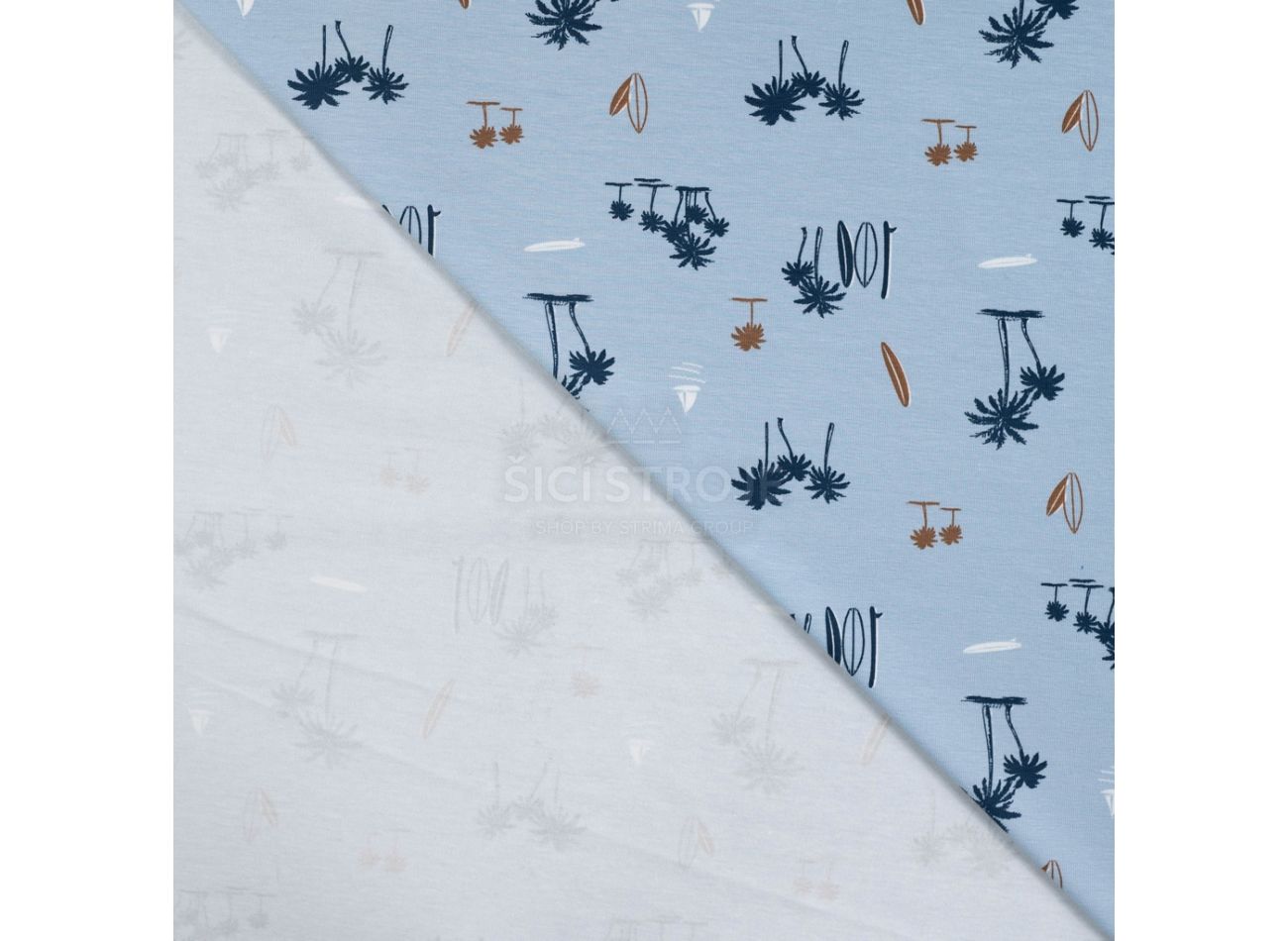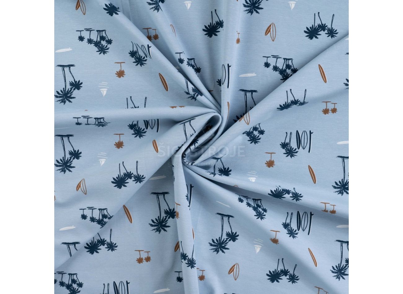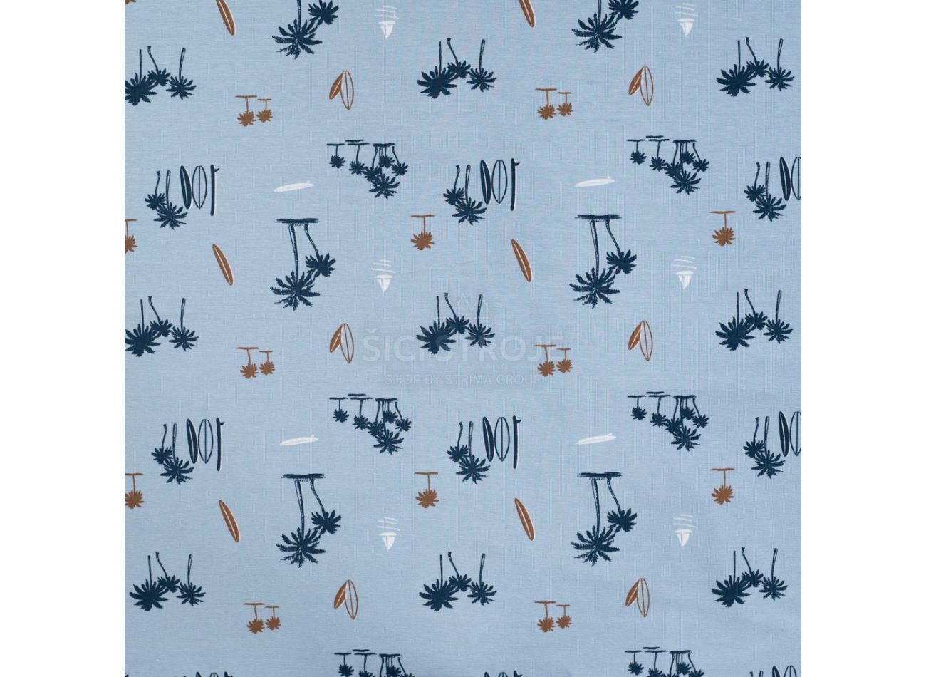 Cotton/EA Jersey Print, 95% bavlna, 5% elastan, minimálna šírka 145 cm, gramáž 200 g/m2, vzor beach, farba baby blue