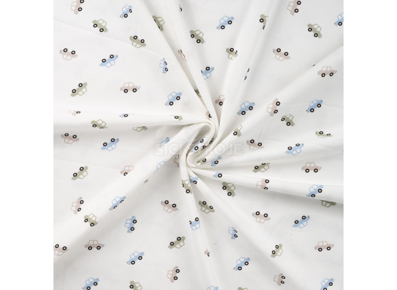 Cotton/EA Jersey Print, 95% bavlna, 5% elastan, minimálna šírka 145 cm, gramáž 200 g/m2, vzor cars, farba ecru