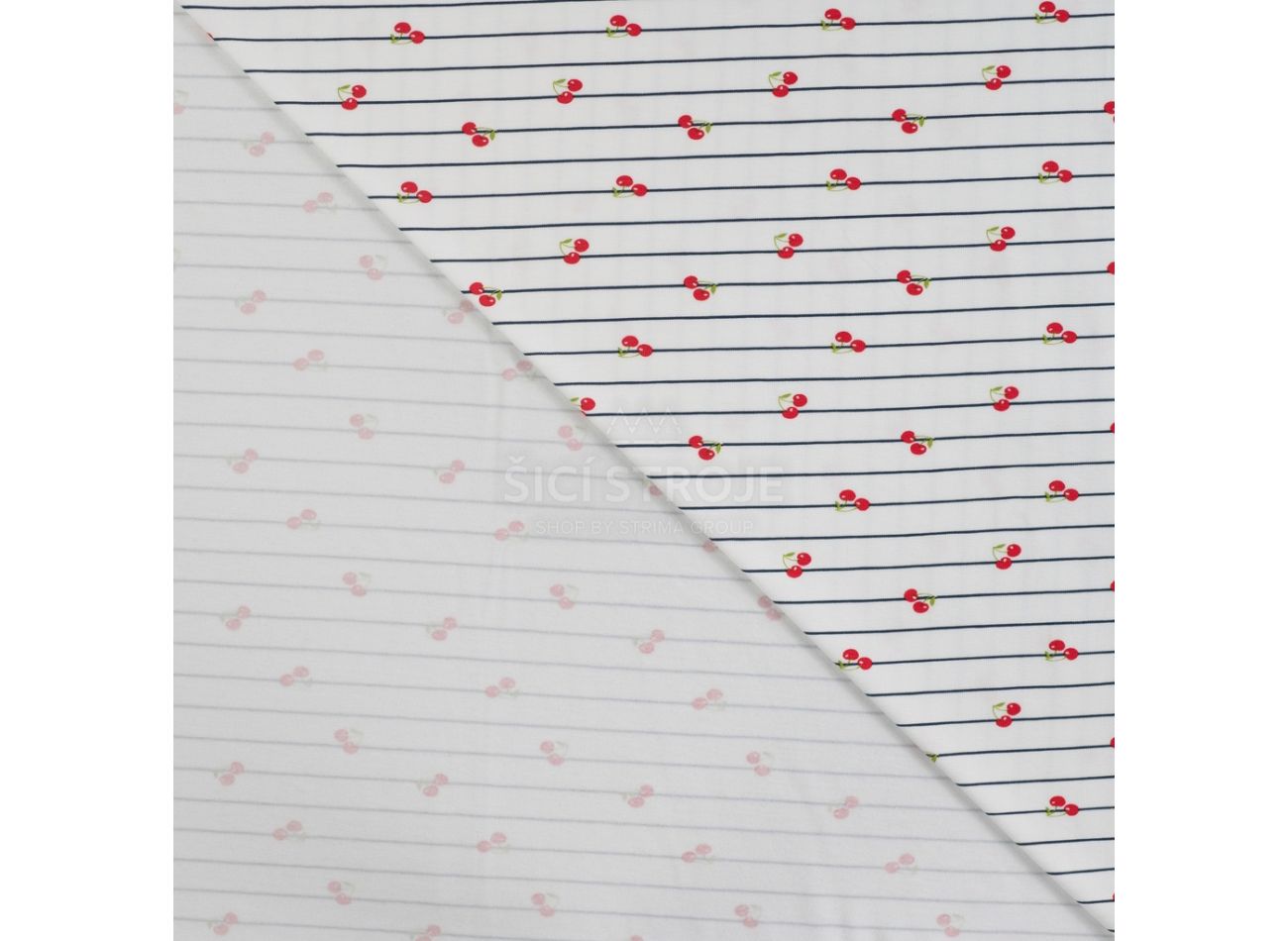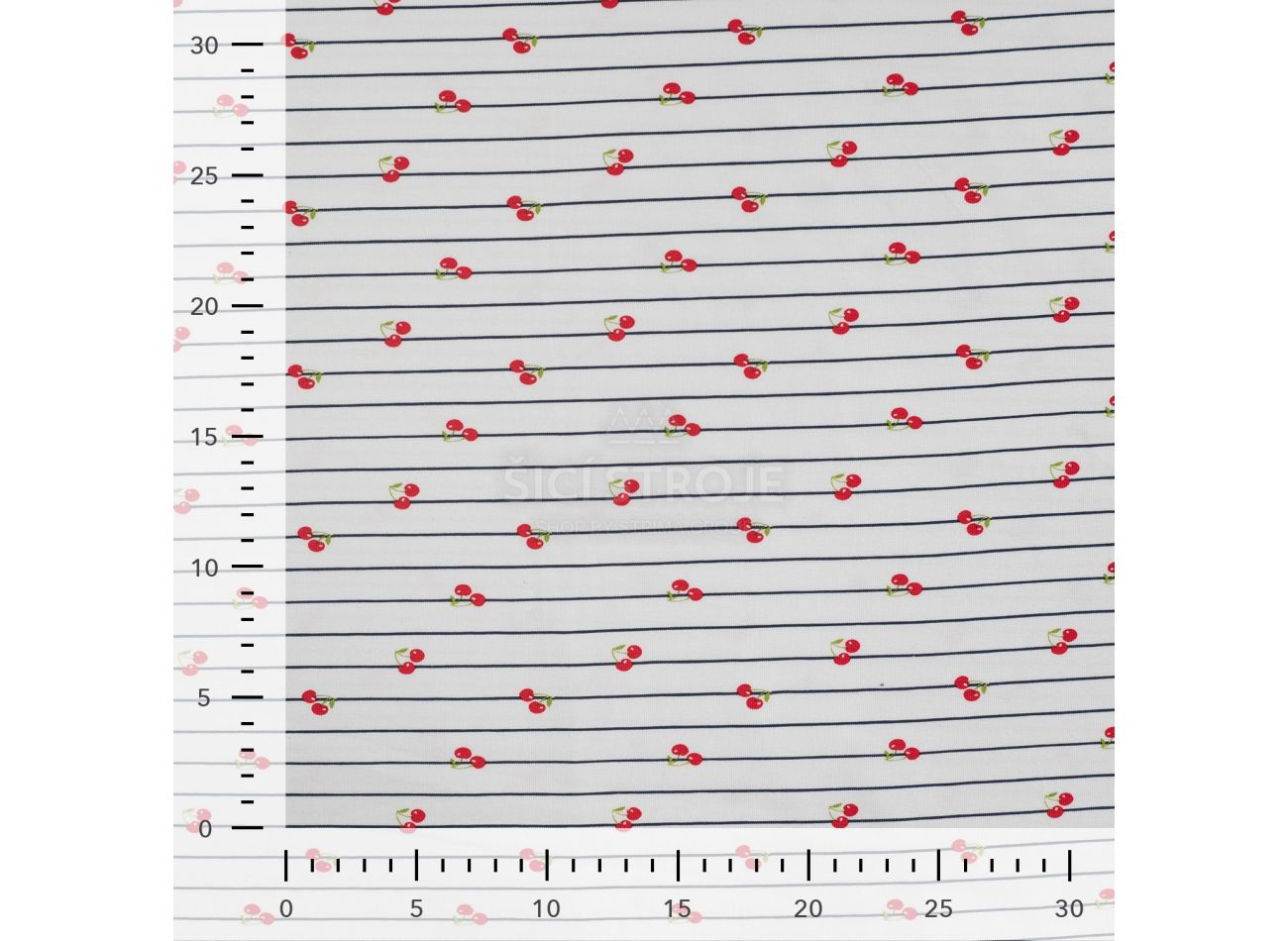 Cotton/EA Jersey Print, 95% bavlna, 5% elastan, minimálna šírka 145 cm, gramáž 200 g/m2, vzor cherries, farba red