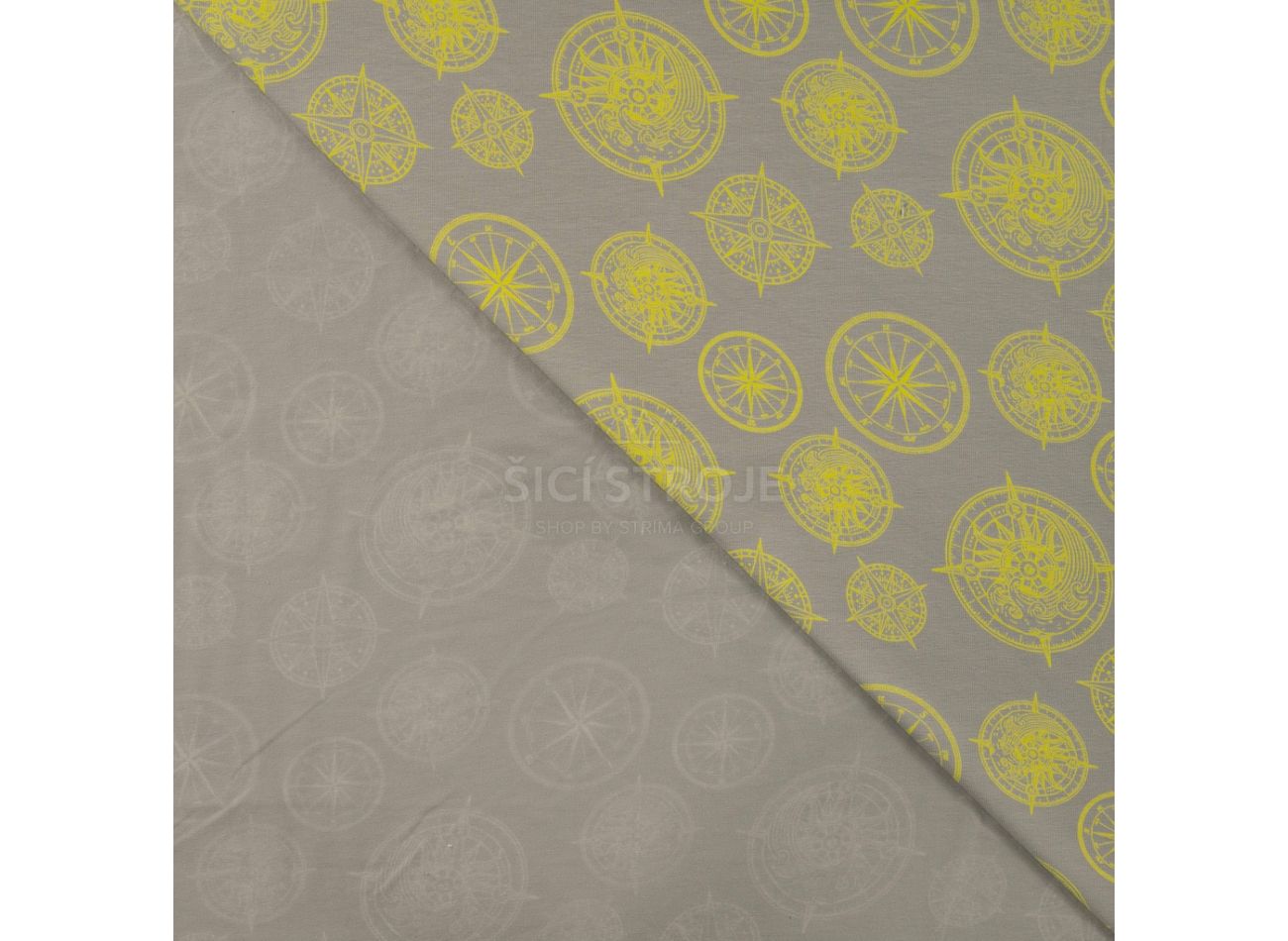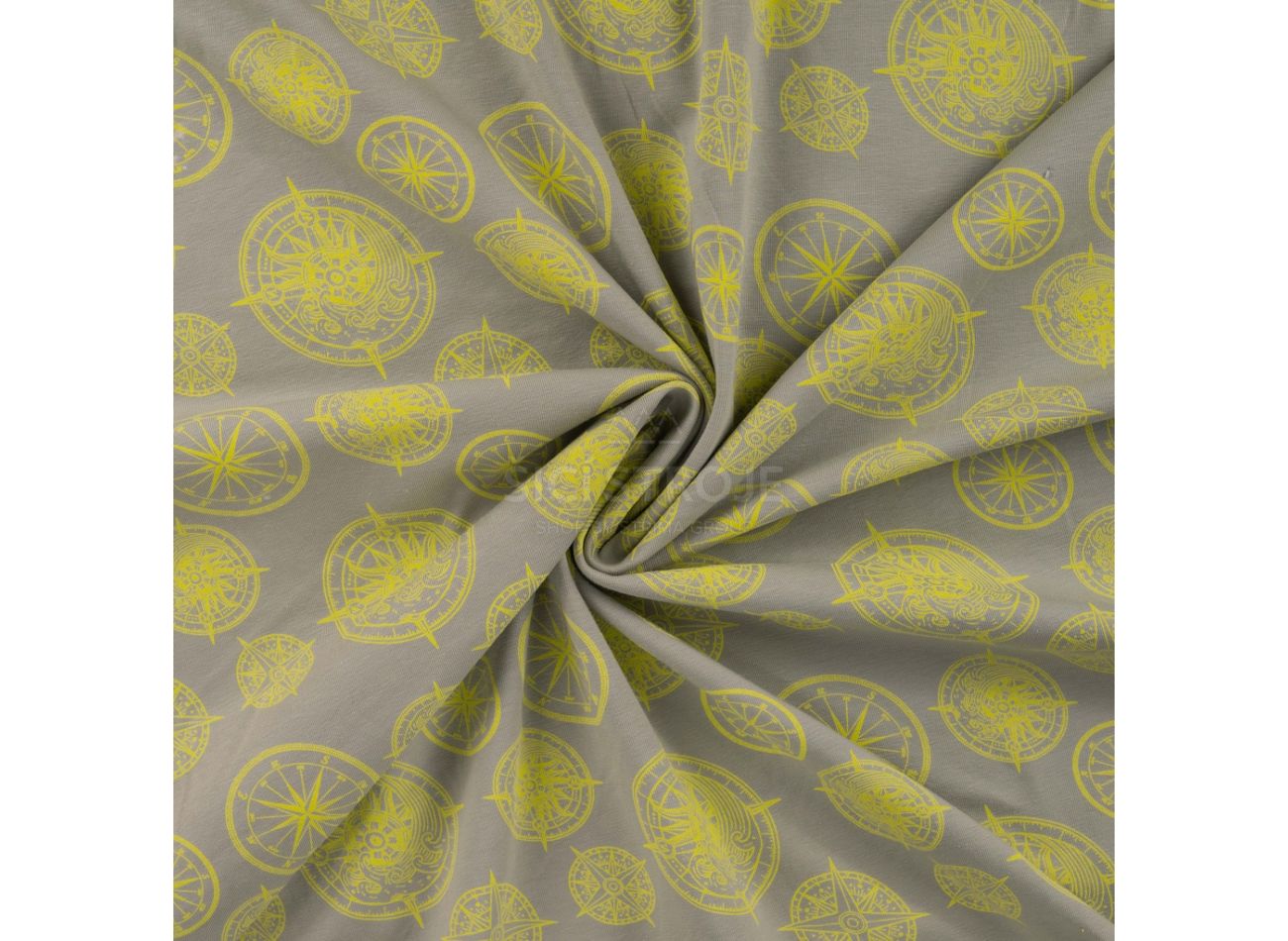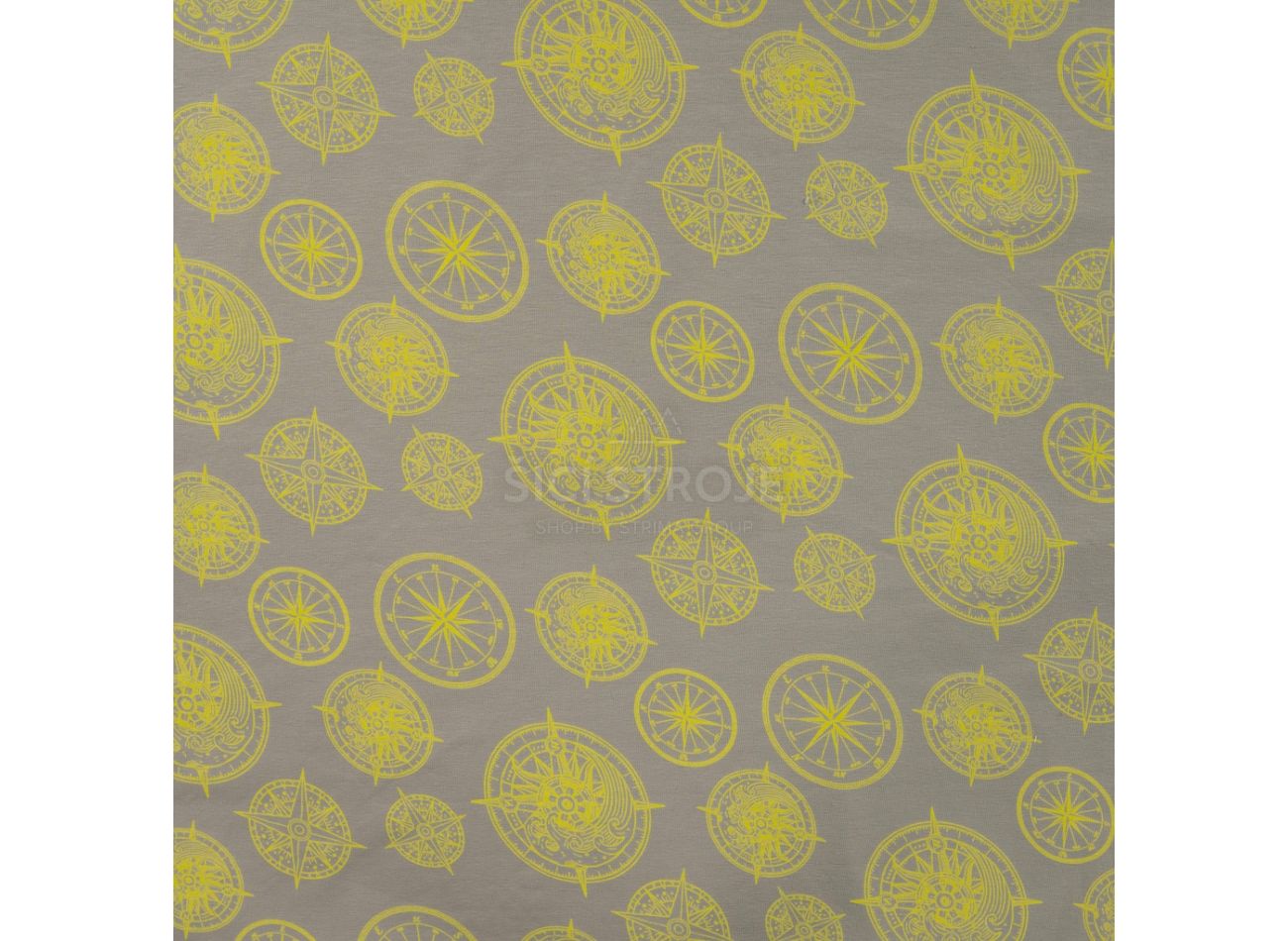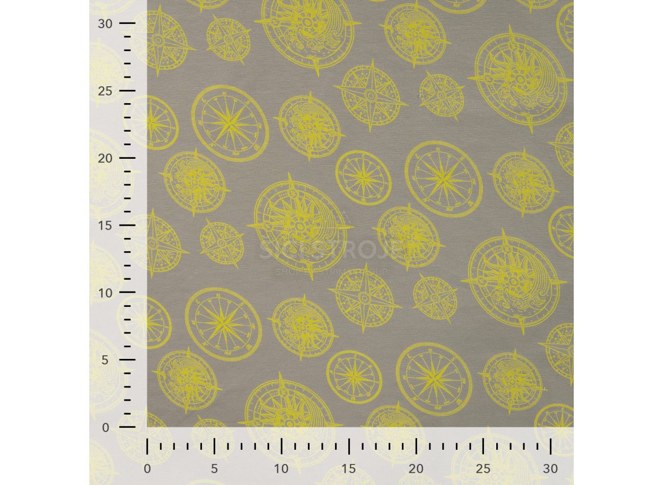 Cotton/EA Jersey Print, 95% bavlna, 5% elastan, minimálna šírka 145 cm, gramáž 200 g/m2, vzor compass, farba khaki