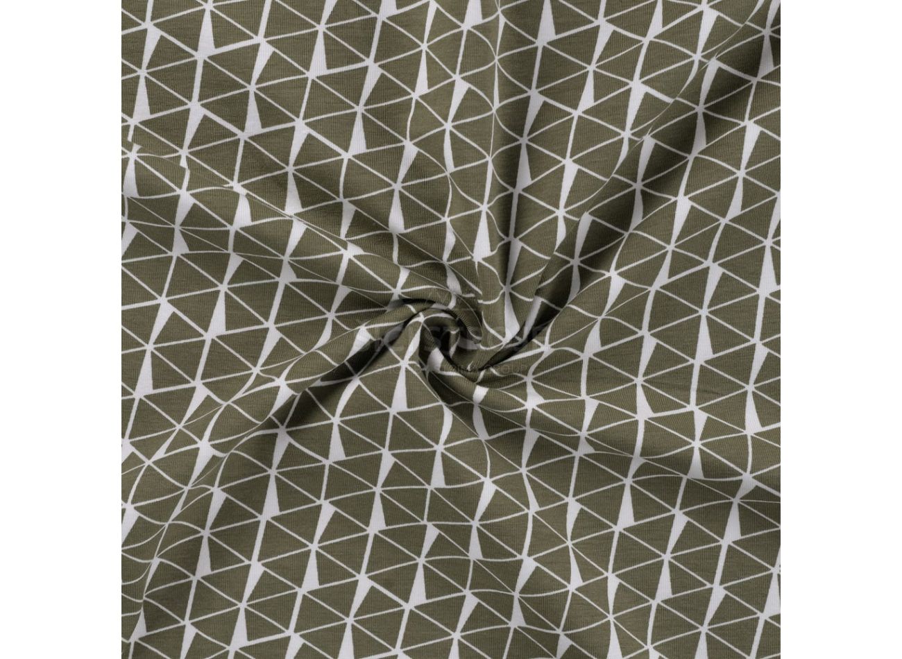 Cotton/EA Jersey Print, 95% bavlna, 5% elastan, minimálna šírka 145 cm, gramáž 200 g/m2, vzor diamond, farba army