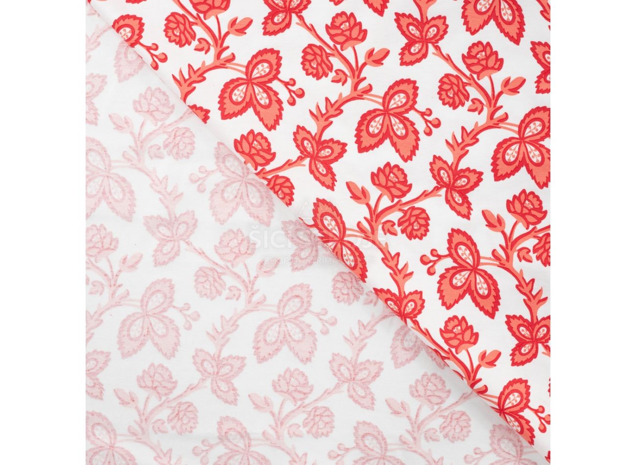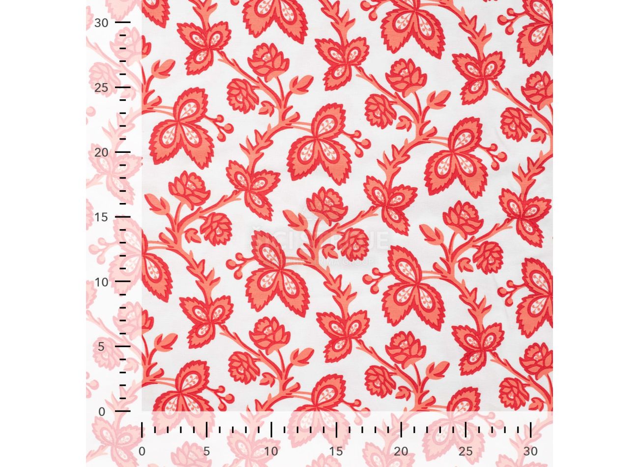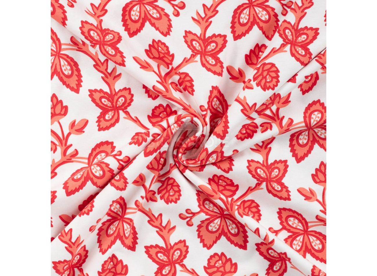 Cotton/EA Jersey Print, 95% bavlna, 5% elastan, minimálna šírka 145 cm, gramáž 200 g/m2, vzor flowers, farba coral