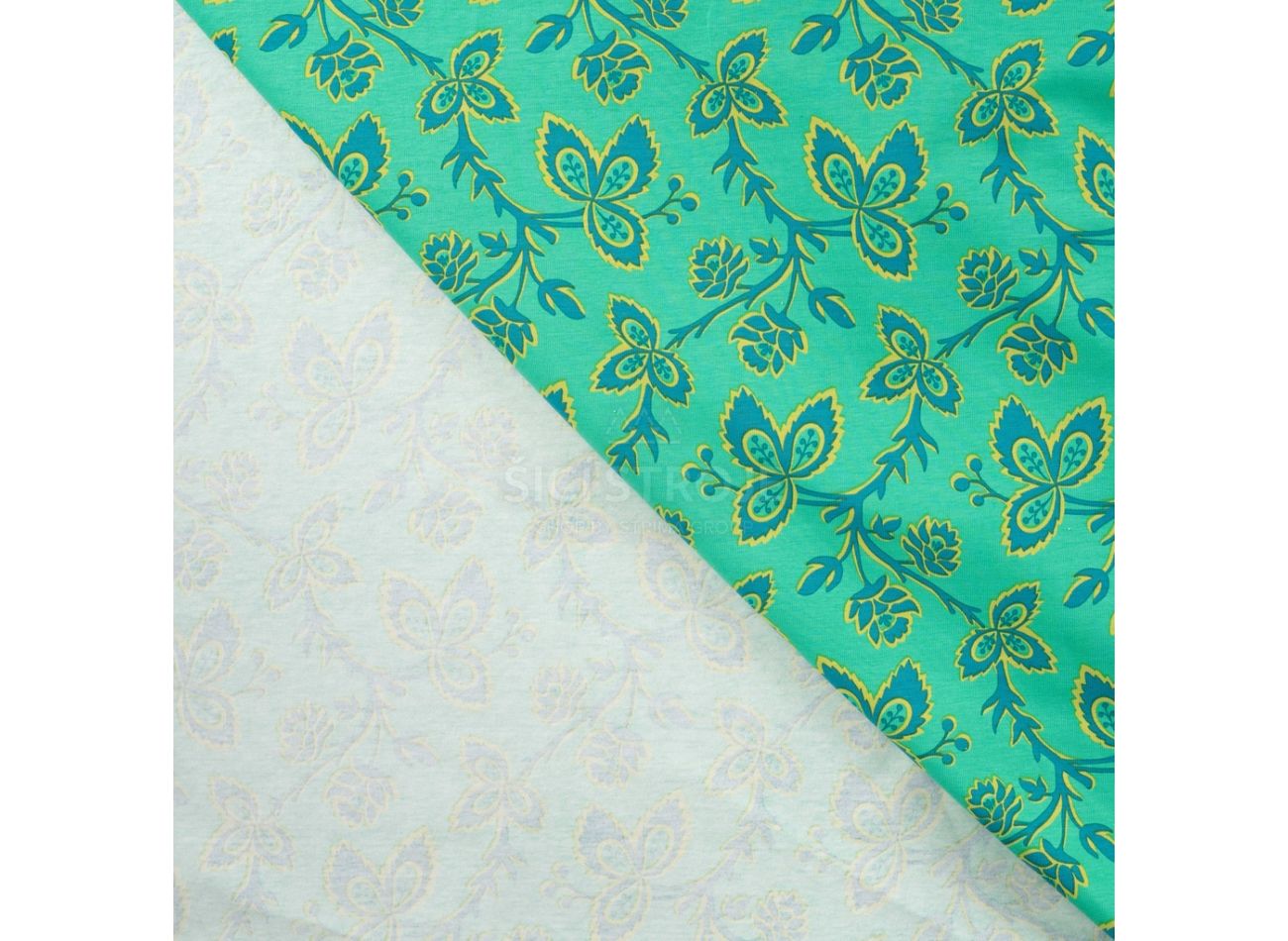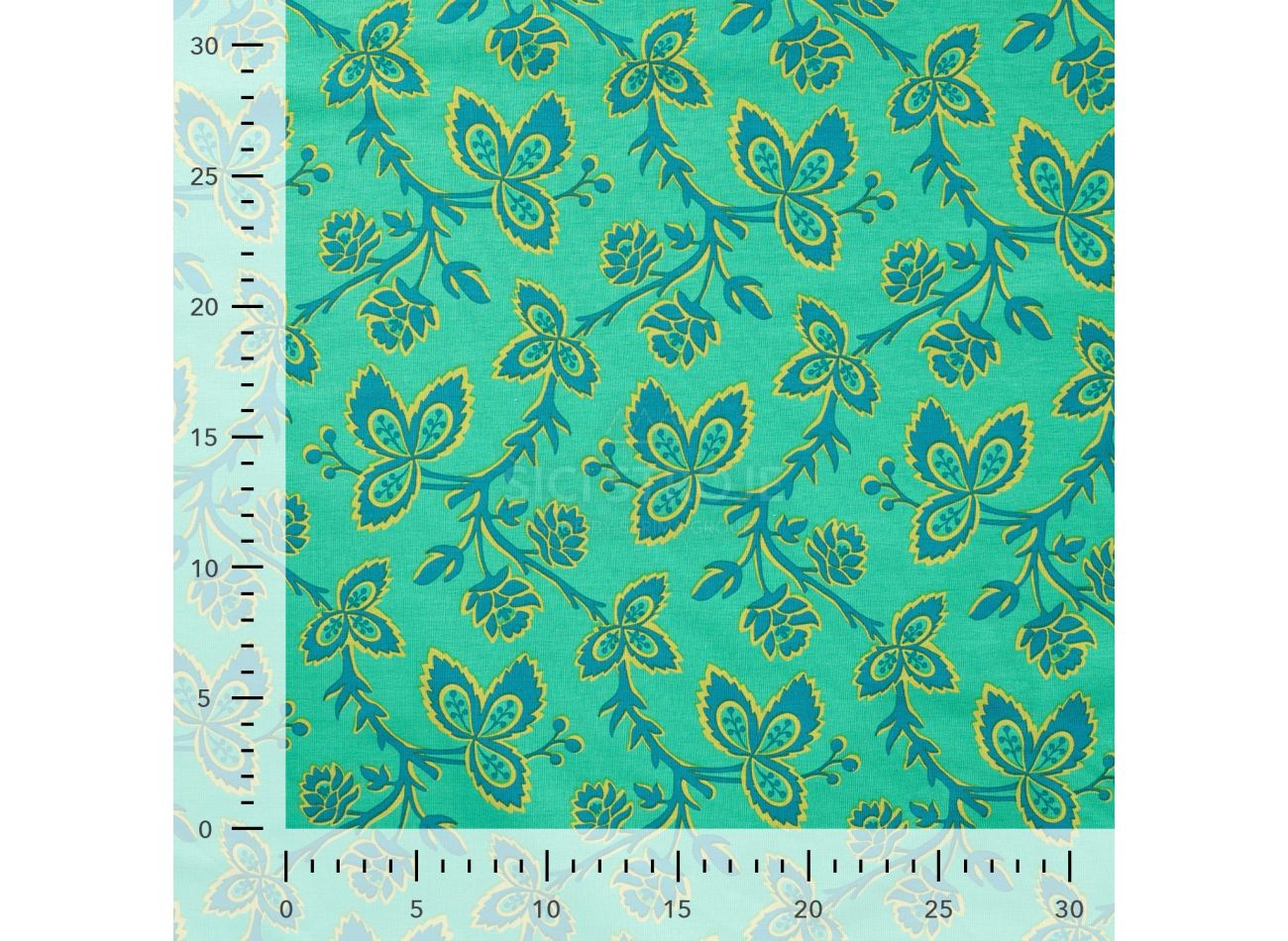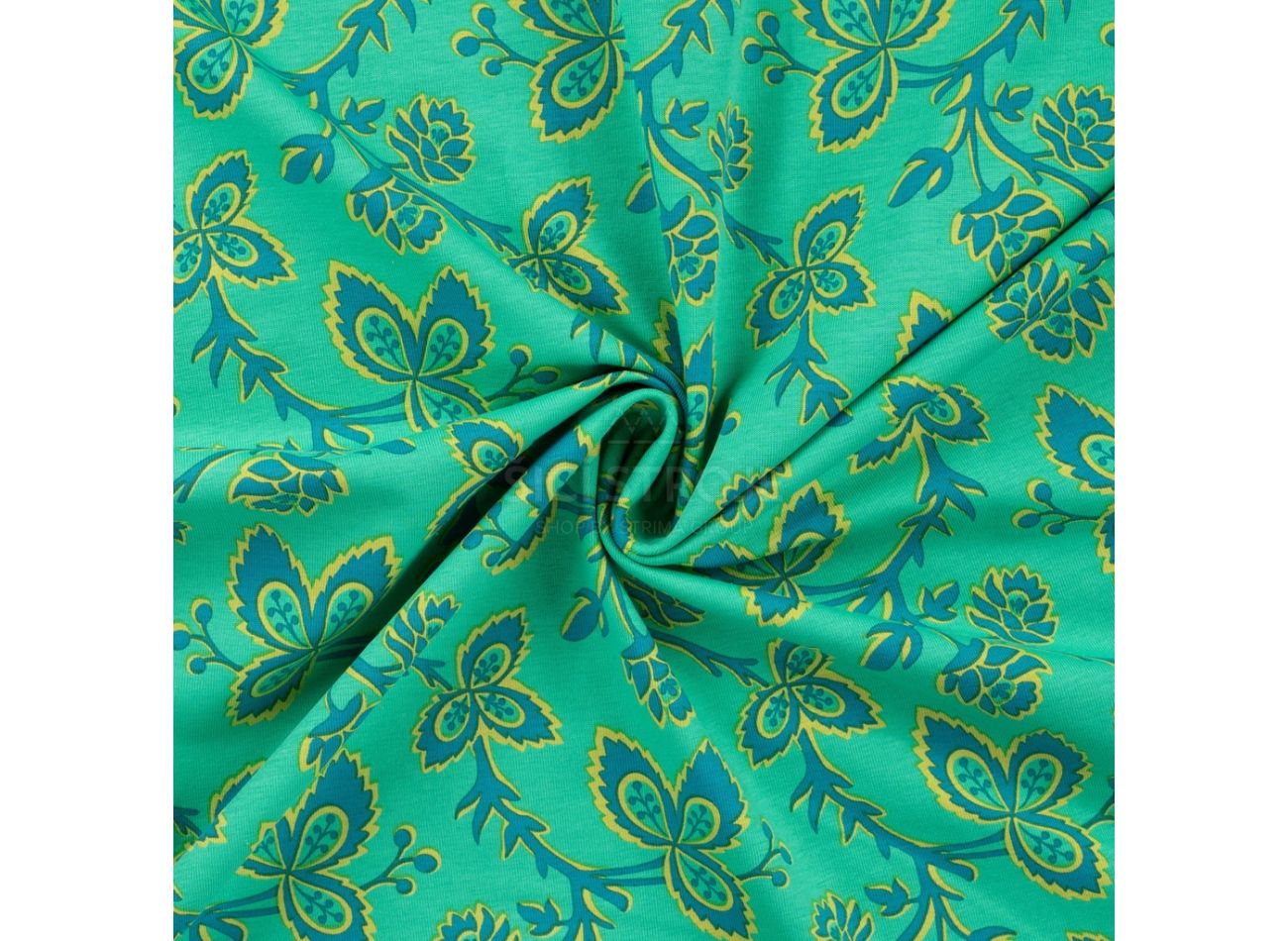 Cotton/EA Jersey Print, 95% bavlna, 5% elastan, minimálna šírka 145 cm, gramáž 200 g/m2, vzor flowers, farba grass
