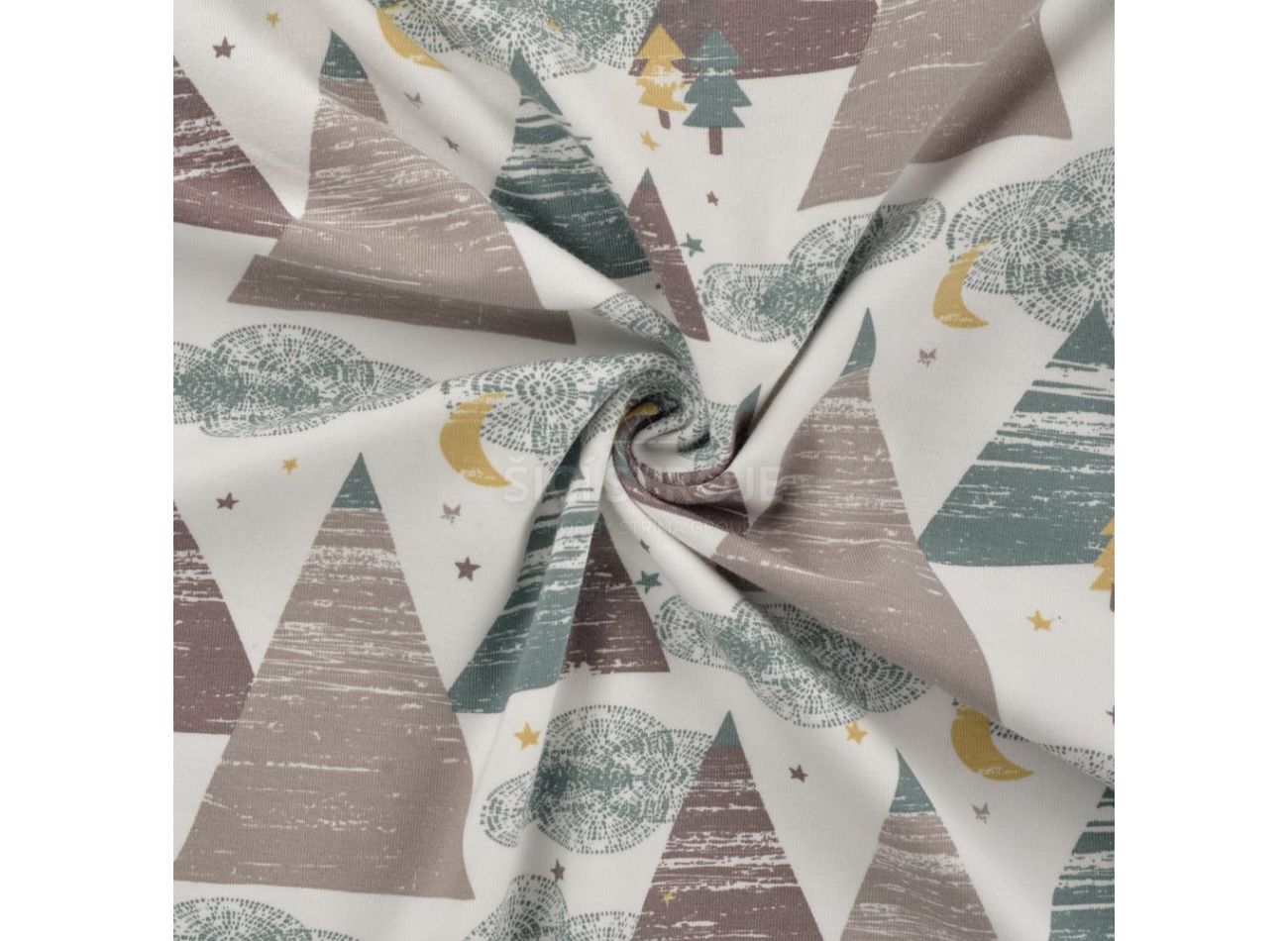 Cotton/EA Jersey Print - Forest Night, Taupe