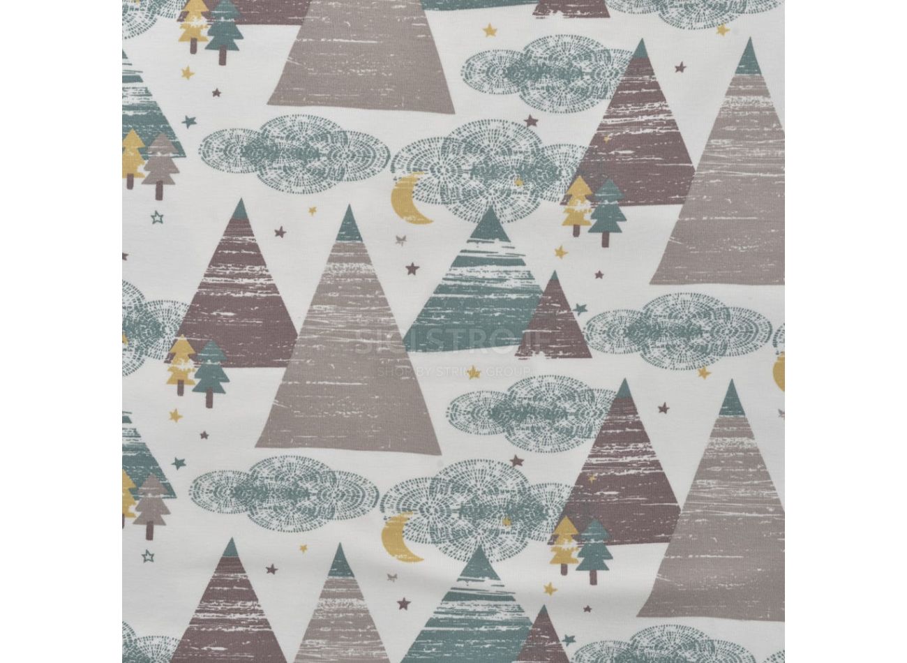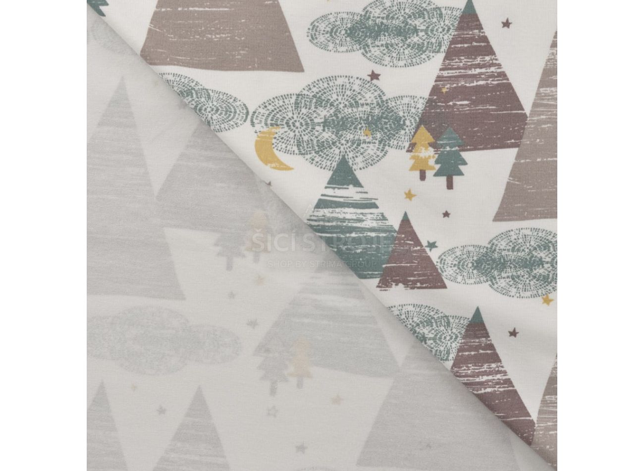 Cotton/EA Jersey Print, 95% bavlna, 5% elastan, minimálna šírka 145 cm, gramáž 200 g/m2, vzor forest night, farba taupe