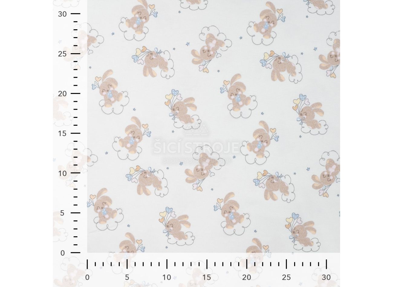 Cotton/EA Jersey Print, 95% bavlna, 5% elastan, minimálna šírka 145 cm, gramáž 200 g/m2, vzor rabbit hearts, farba off white