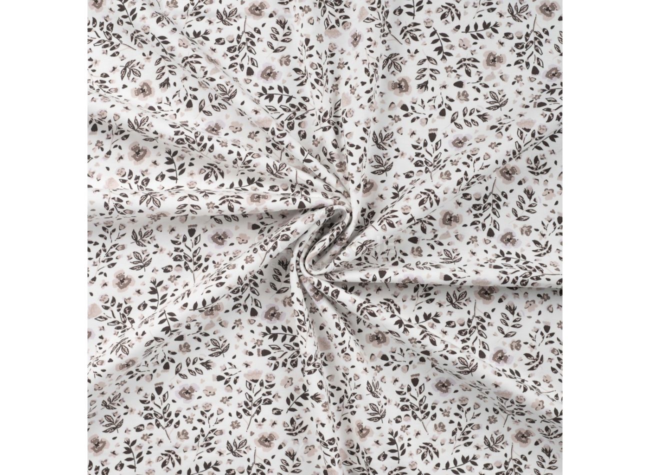 Cotton/EA Jersey Print, 95% bavlna, 5% elastan, minimálna šírka 145 cm, gramáž 200 g/m2, vzor stylish flowers, farba off white