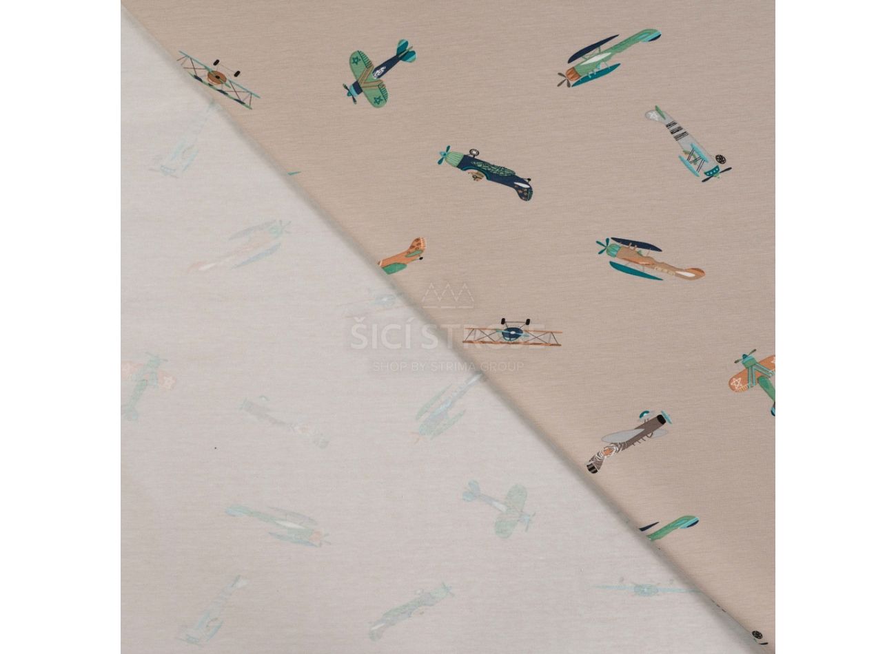 Cotton/EA Jersey Print - Vintage Airplanes, Sand