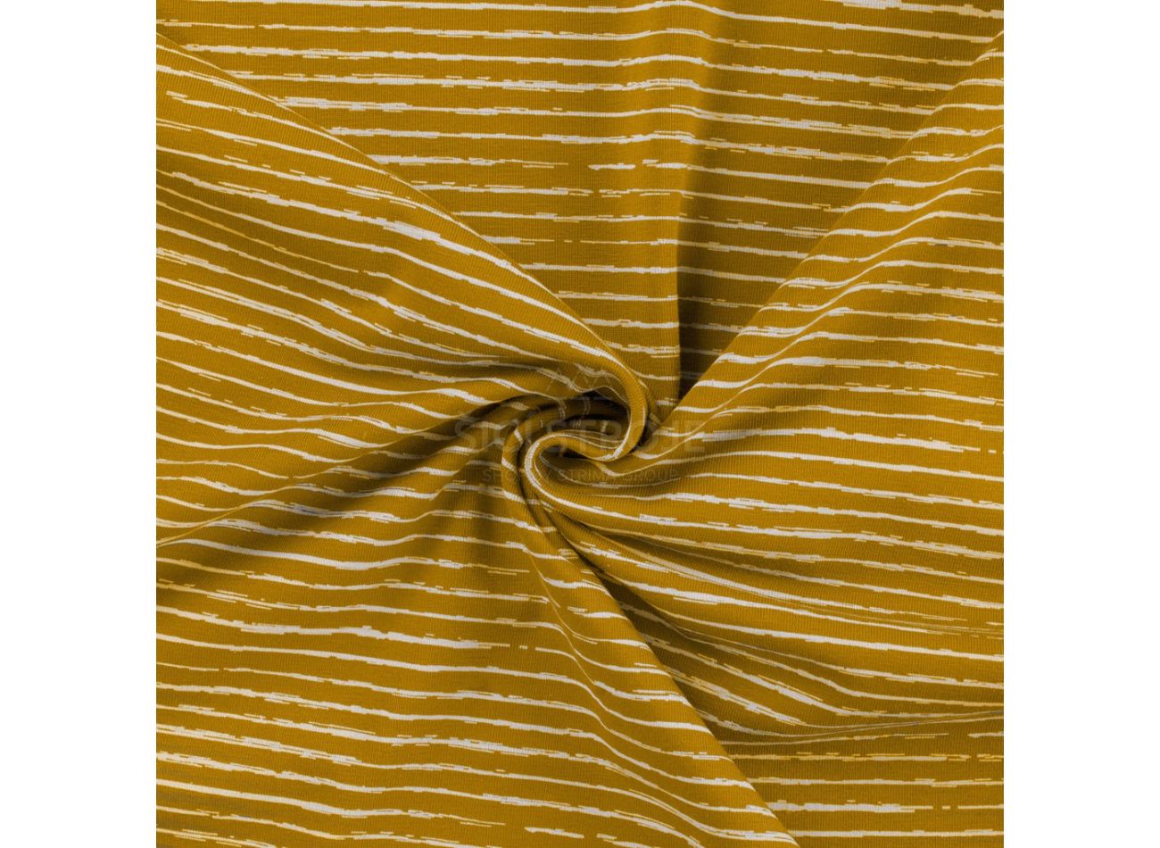 Cotton/EA Jersey, 95% bavlna, 5% elastan, minimálna šírka 145 cm, gramáž 200 g/m2, vzor stripe, farba ochre