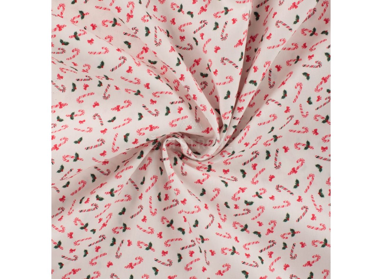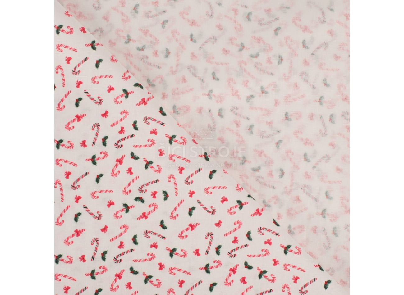 Cotton Poplin, 100% bavlna, minimálna šírka 145 cm, gramáž 130 g/m2, vzor candy canes, farba white