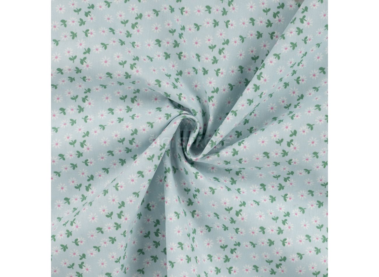 Cotton Poplin Print, 100% bavlna, minimálna šírka 145 cm, gramáž 120 g/m2, vzor little flowers, farba baby blue