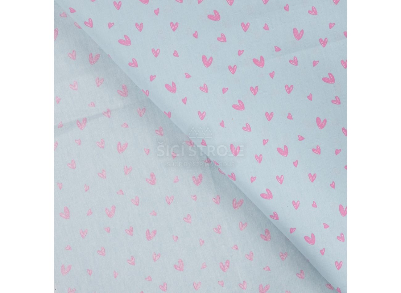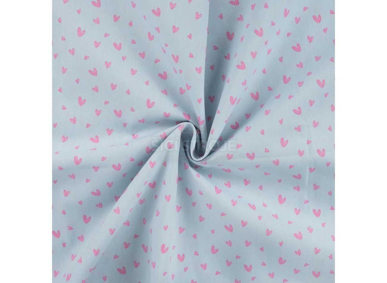 Cotton Poplin Print, 100% bavlna, minimálna šírka 145 cm, gramáž 120 g/m2, vzor little hearts, farba baby blue