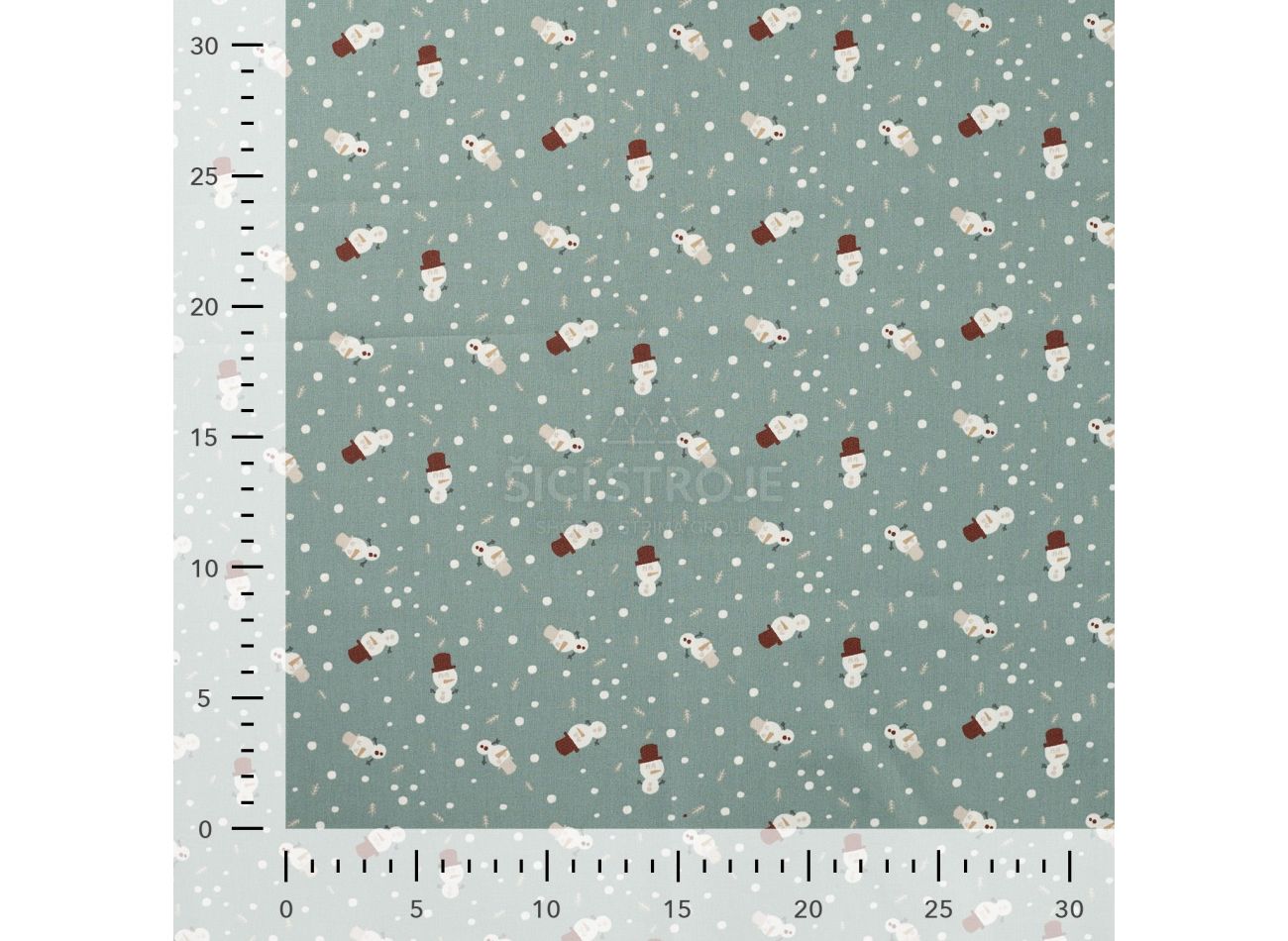 Cotton Poplin Print, 100% bavlna, minimálna šírka 140 cm, gramáž 110 g/m2, vzor snowman, farba dark dusty mint