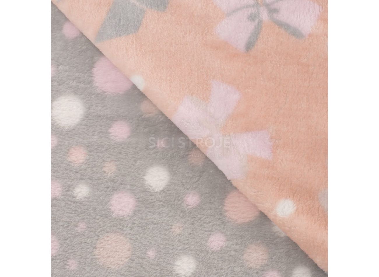 Cuddle Fleece Double Face, 100% polyester, minimálna šírka 145 cm, gramáž 300 g/m2, vzor bow + dots, farba dusty pink