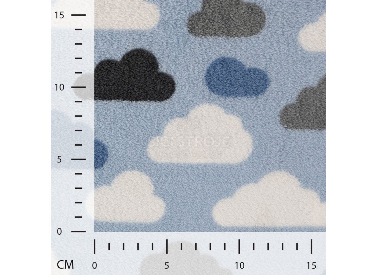 Cuddle Fleece Double Face, 100% polyester, minimálna šírka 145 cm, gramáž 280 g/m2, vzor clouds & raindrops, farba dusty blue