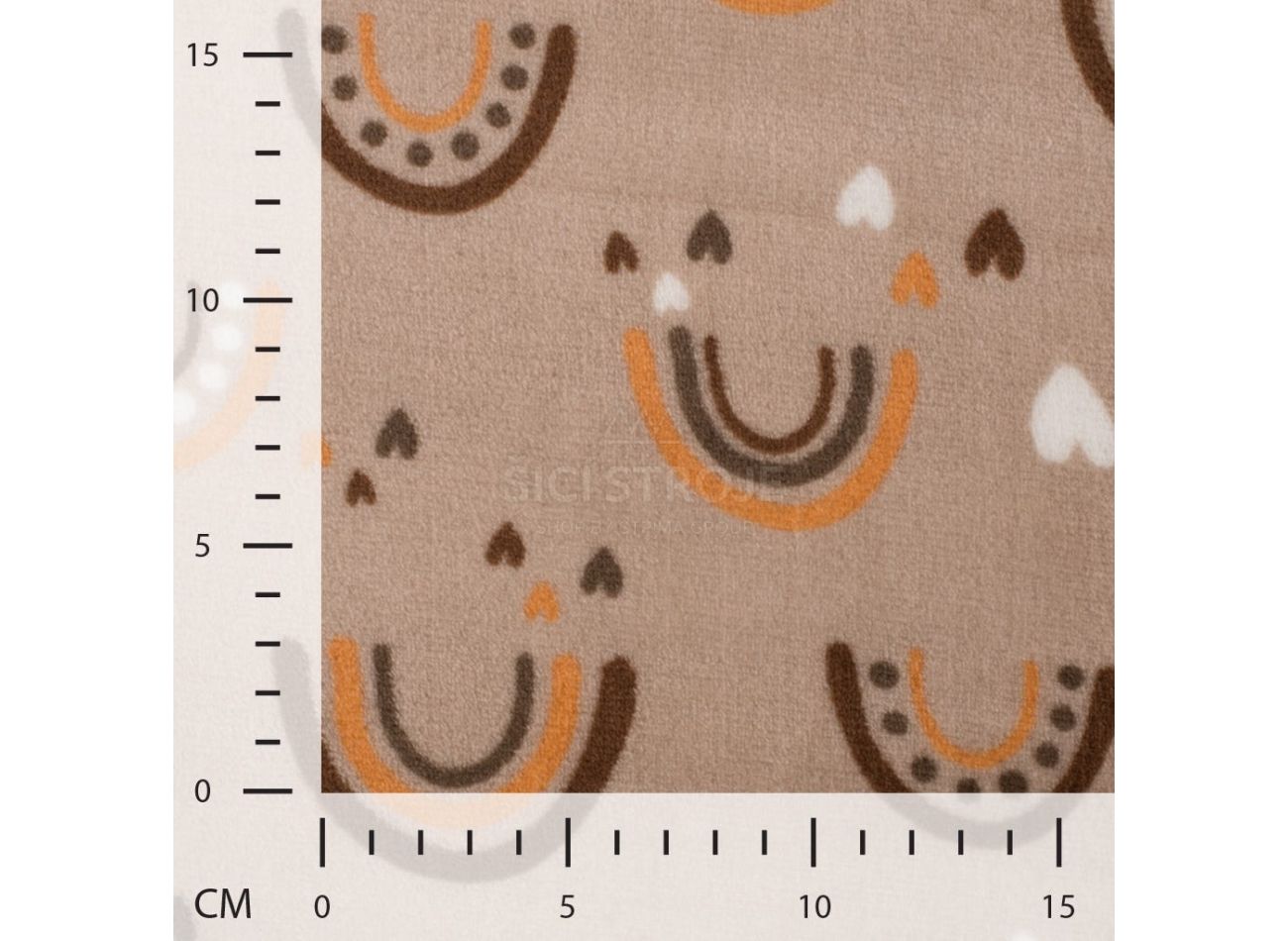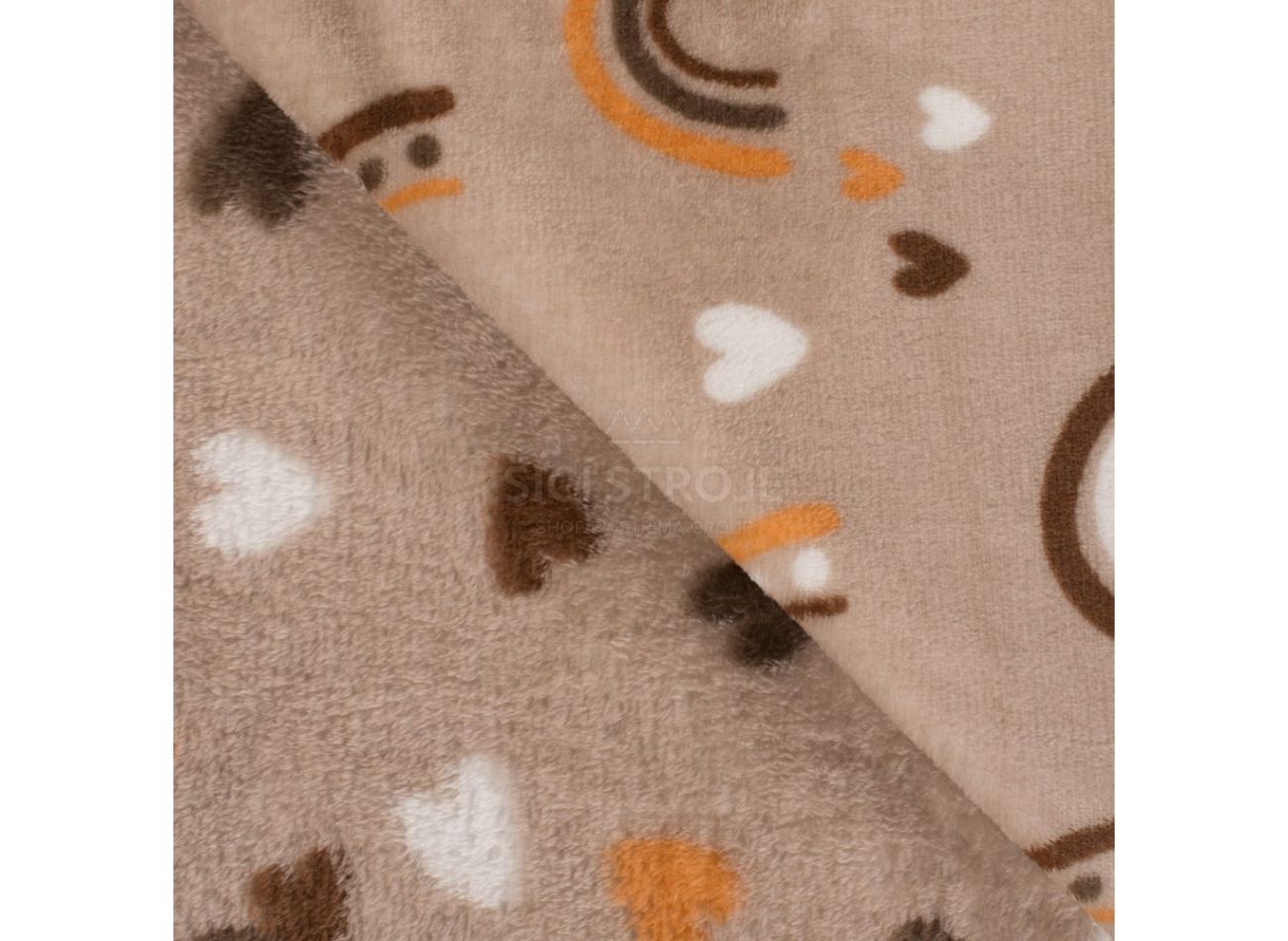Cuddle Fleece Double Face, 100% polyester, minimálna šírka 145 cm, gramáž 300 g/m2, vzor rainbow + hearts, farba sand
