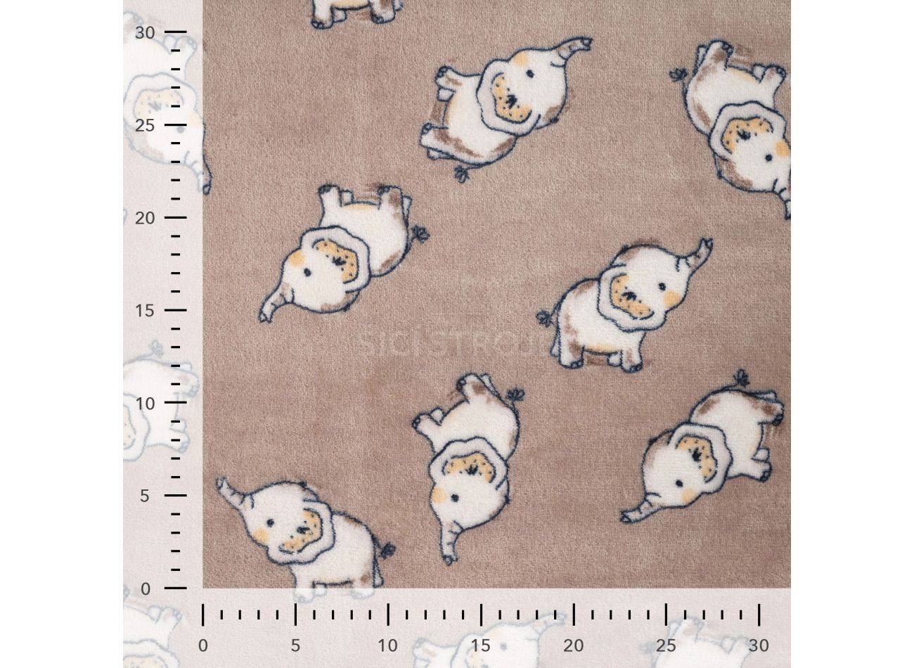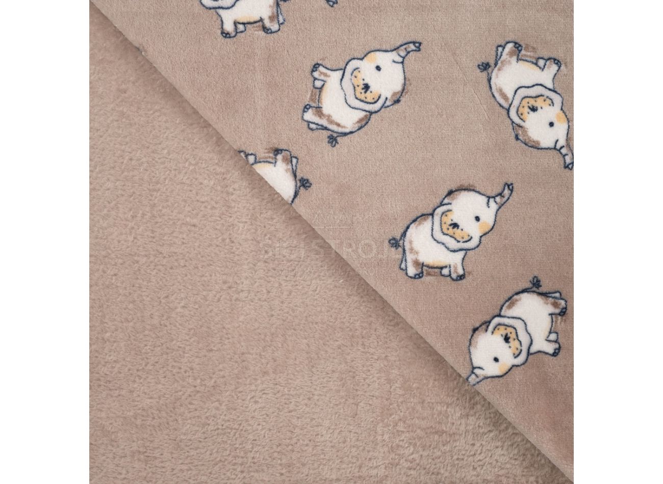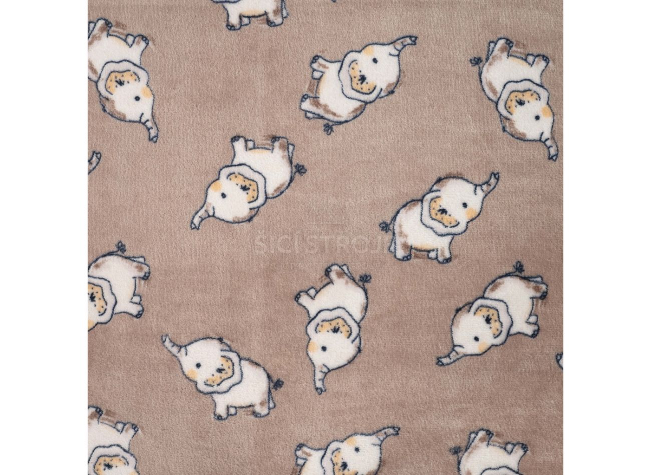 Cuddle Fleece Print + Uni, 100% polyester, minimálna šírka 145 cm, gramáž 300 g/m2, vzor elephants, farba sand