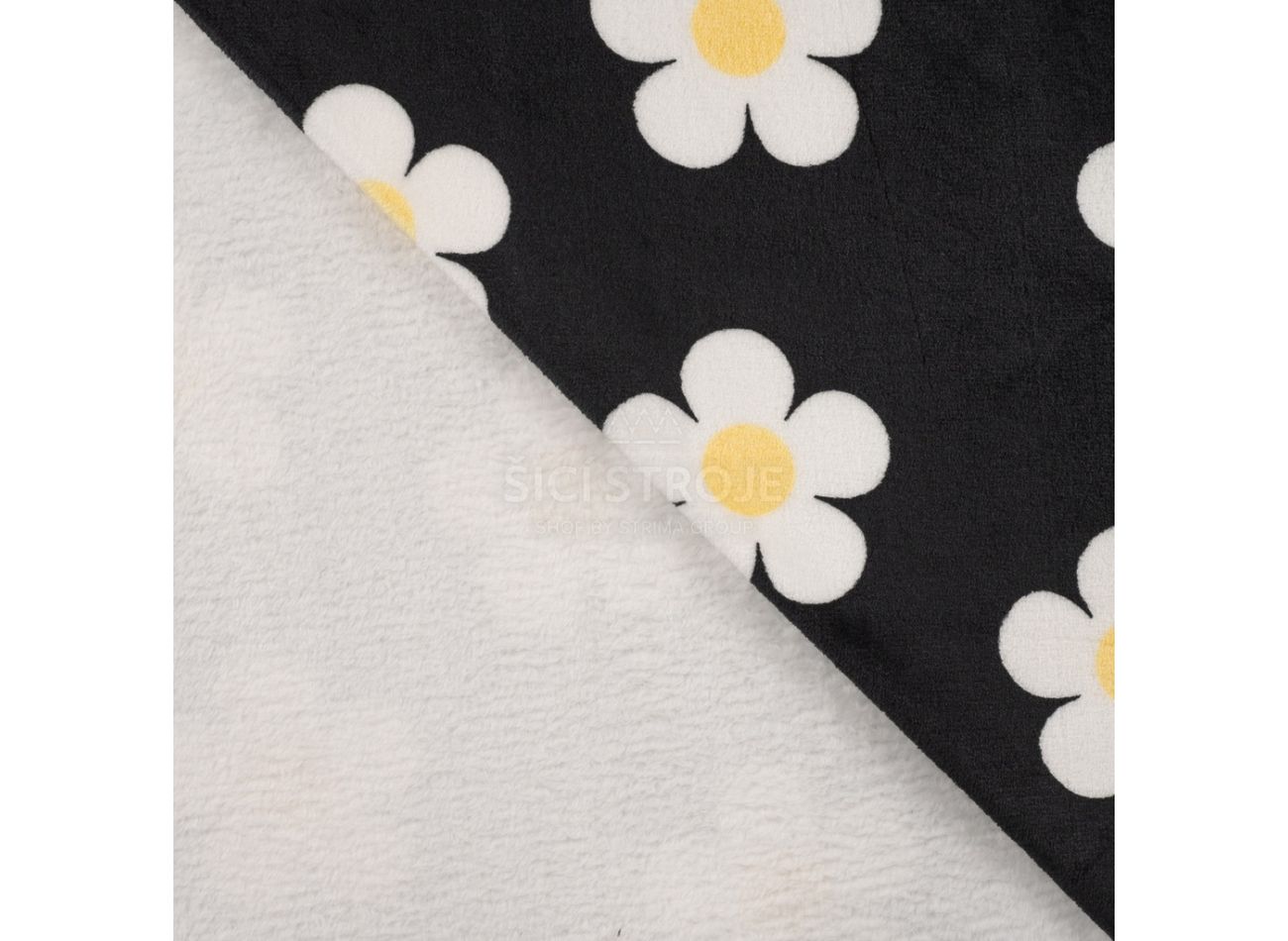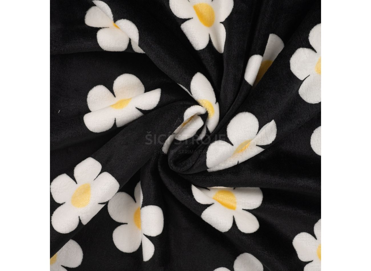 Cuddle Fleece Print + Uni, 100% polyester, minimálna šírka 145 cm, gramáž 300 g/m2, vzor flowers, farba black