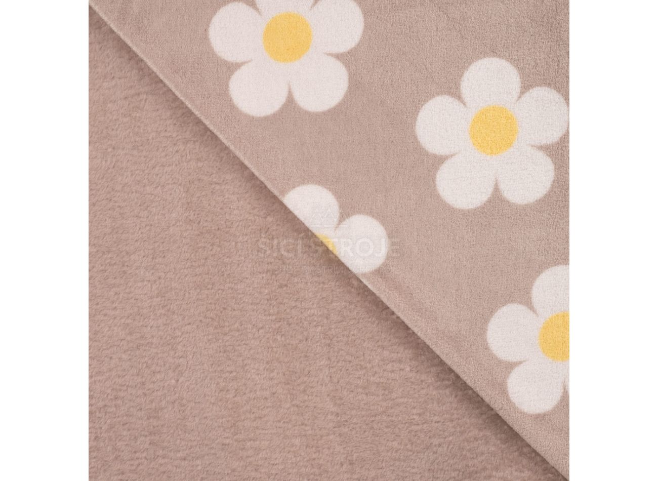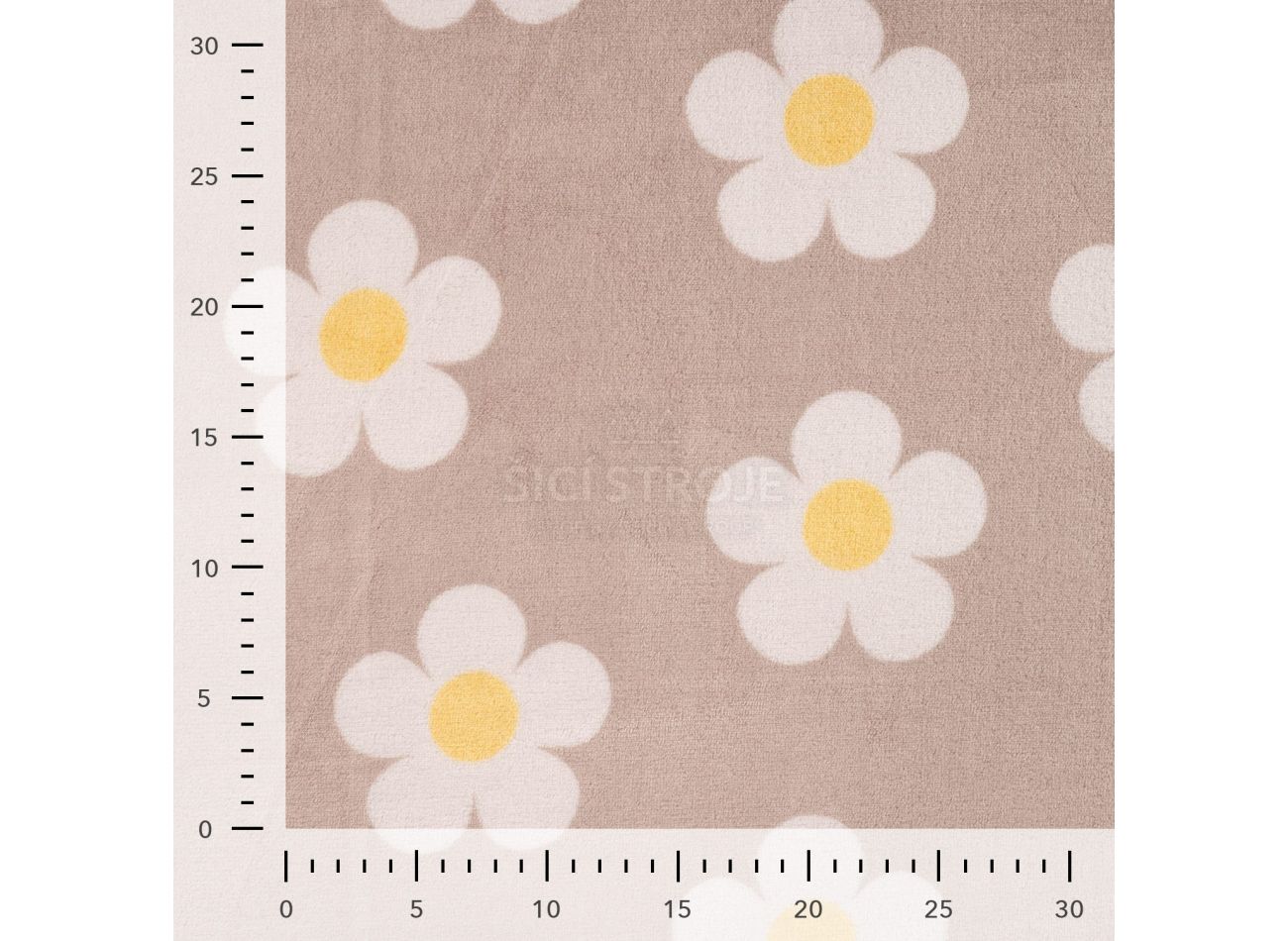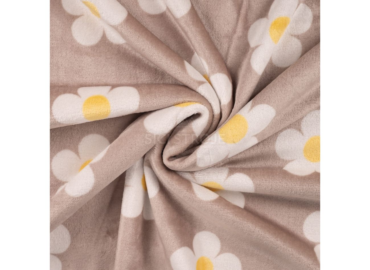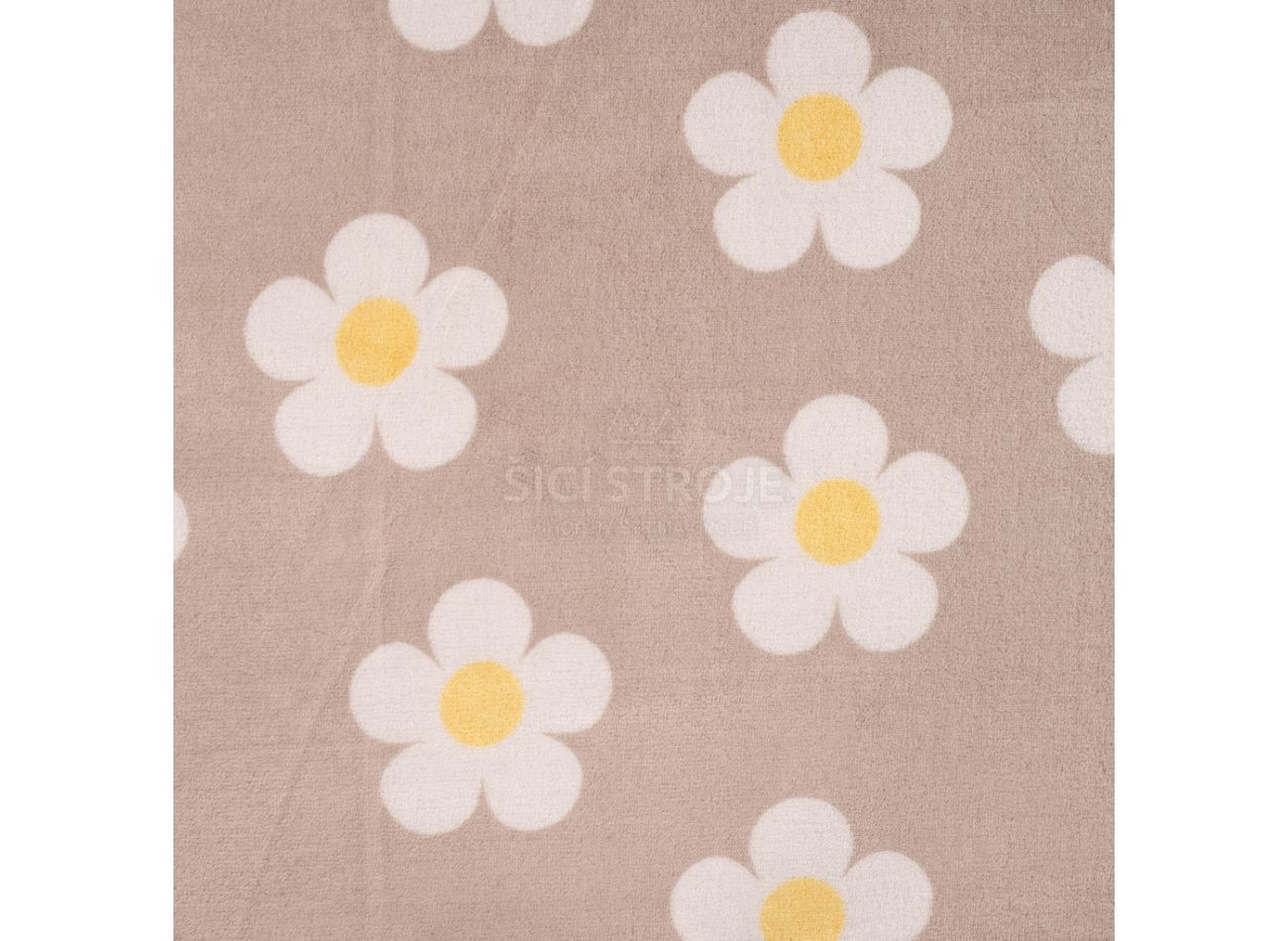 Cuddle Fleece Print + Uni, 100% polyester, minimálna šírka 145 cm, gramáž 300 g/m2, vzor flowers, farba sand