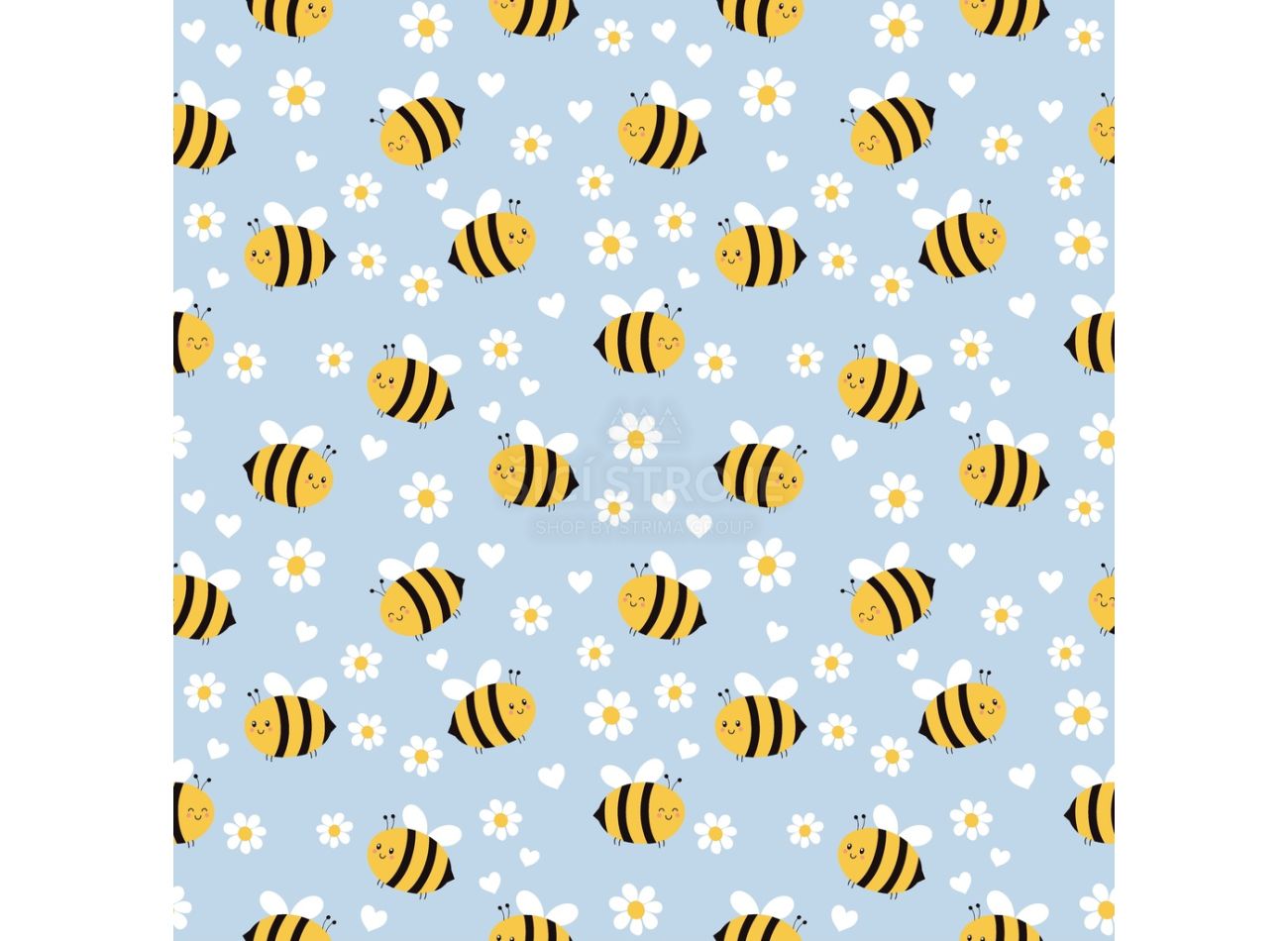 Cute Fleece Print, 100% polyester, minimálna šírka 155 cm, gramáž 260 g/m2, vzor bee, farba baby blue