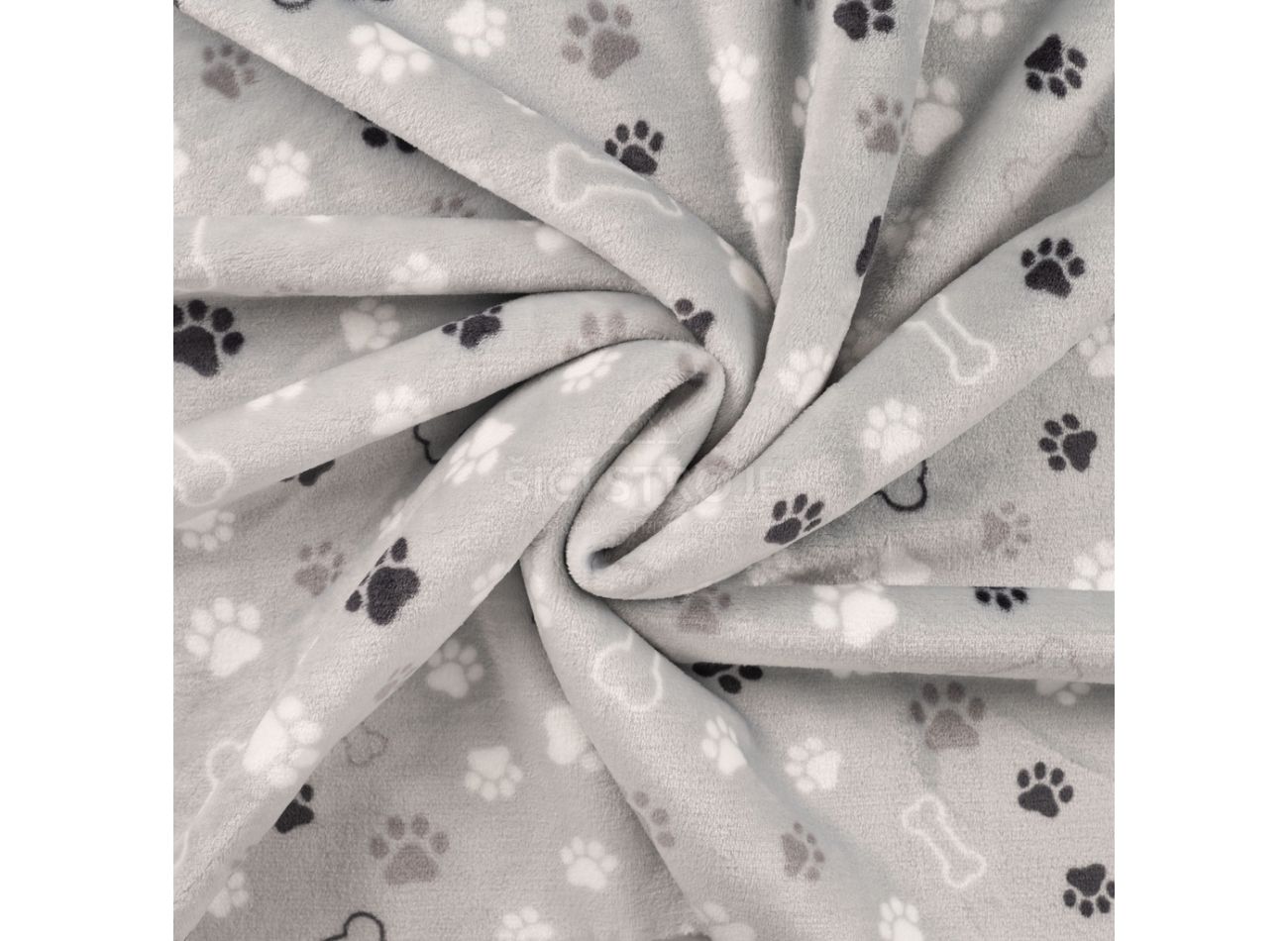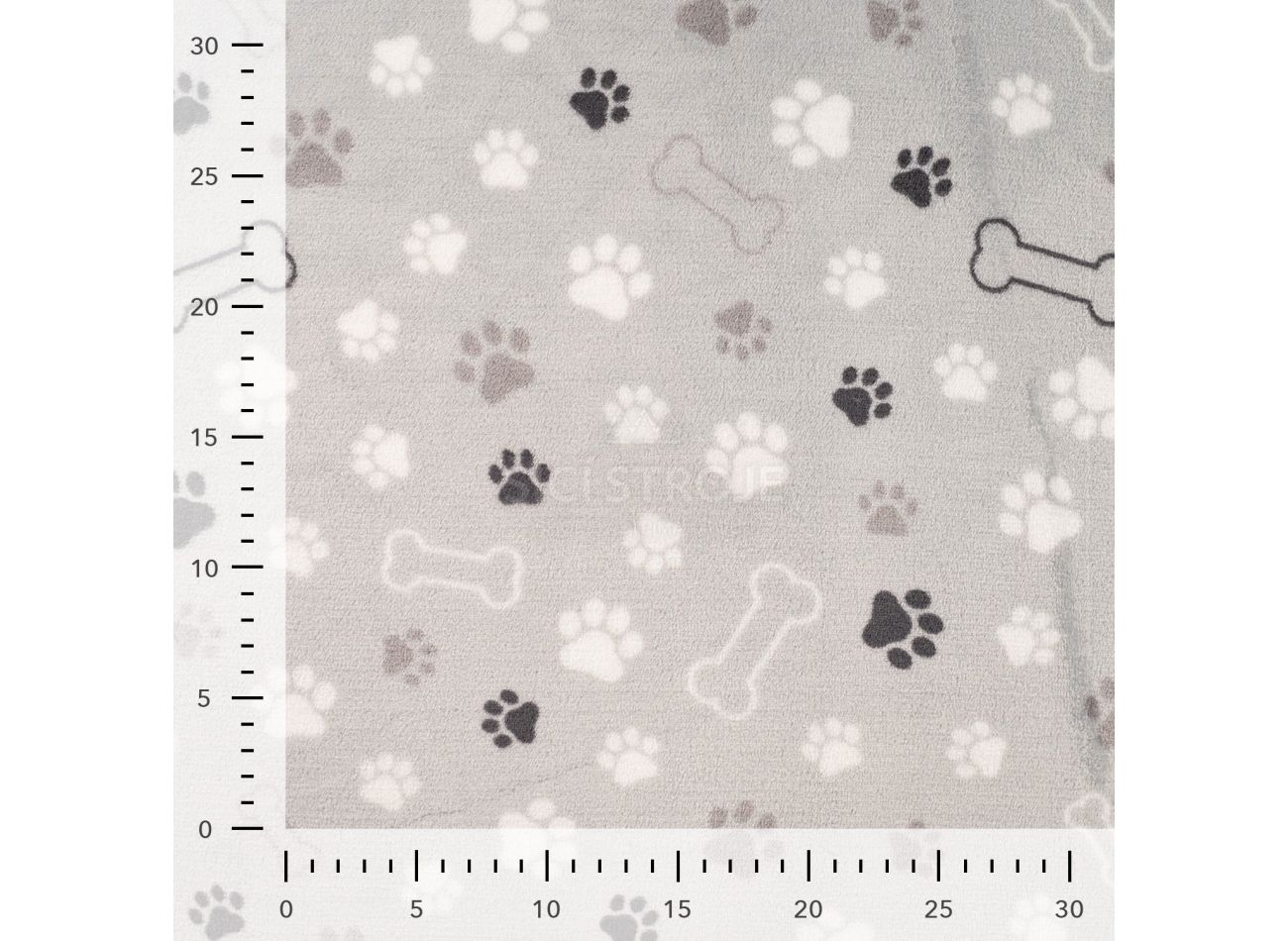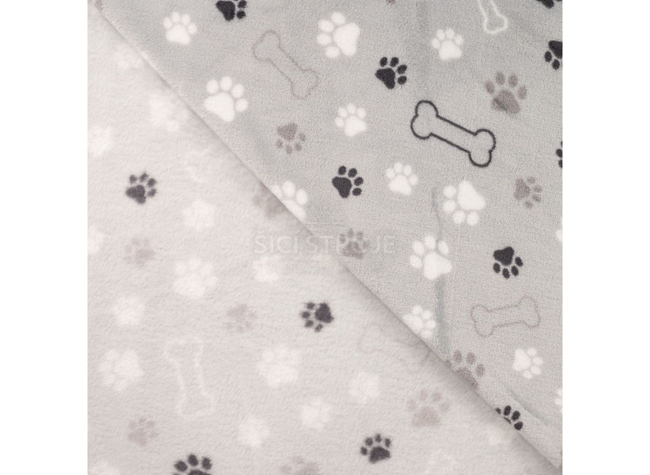 Cute Fleece Print, 100% polyester, minimálna šírka 145 cm, gramáž 260 g/m2, vzor paws and bones, farba silver grey