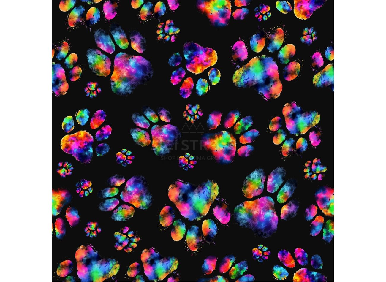 Cute Fleece Print, 100% polyester, minimálna šírka 155 cm, gramáž 260 g/m2, vzor paws, farba multicolor