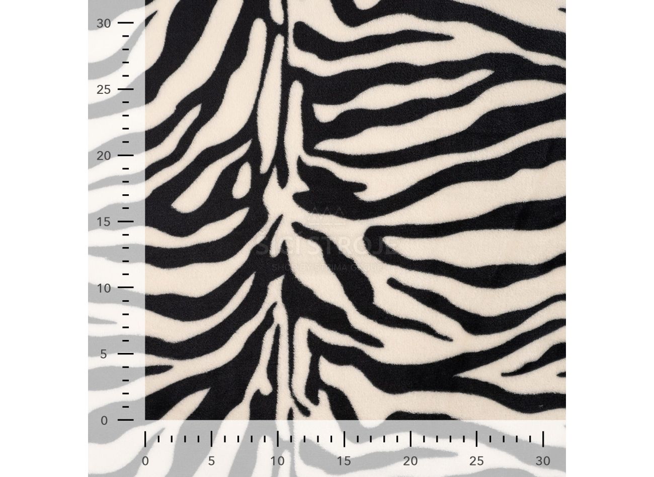 Cute Fleece Print, 100% polyester, minimálna šírka 145 cm, gramáž 260 g/m2, vzor zebra, farba black
