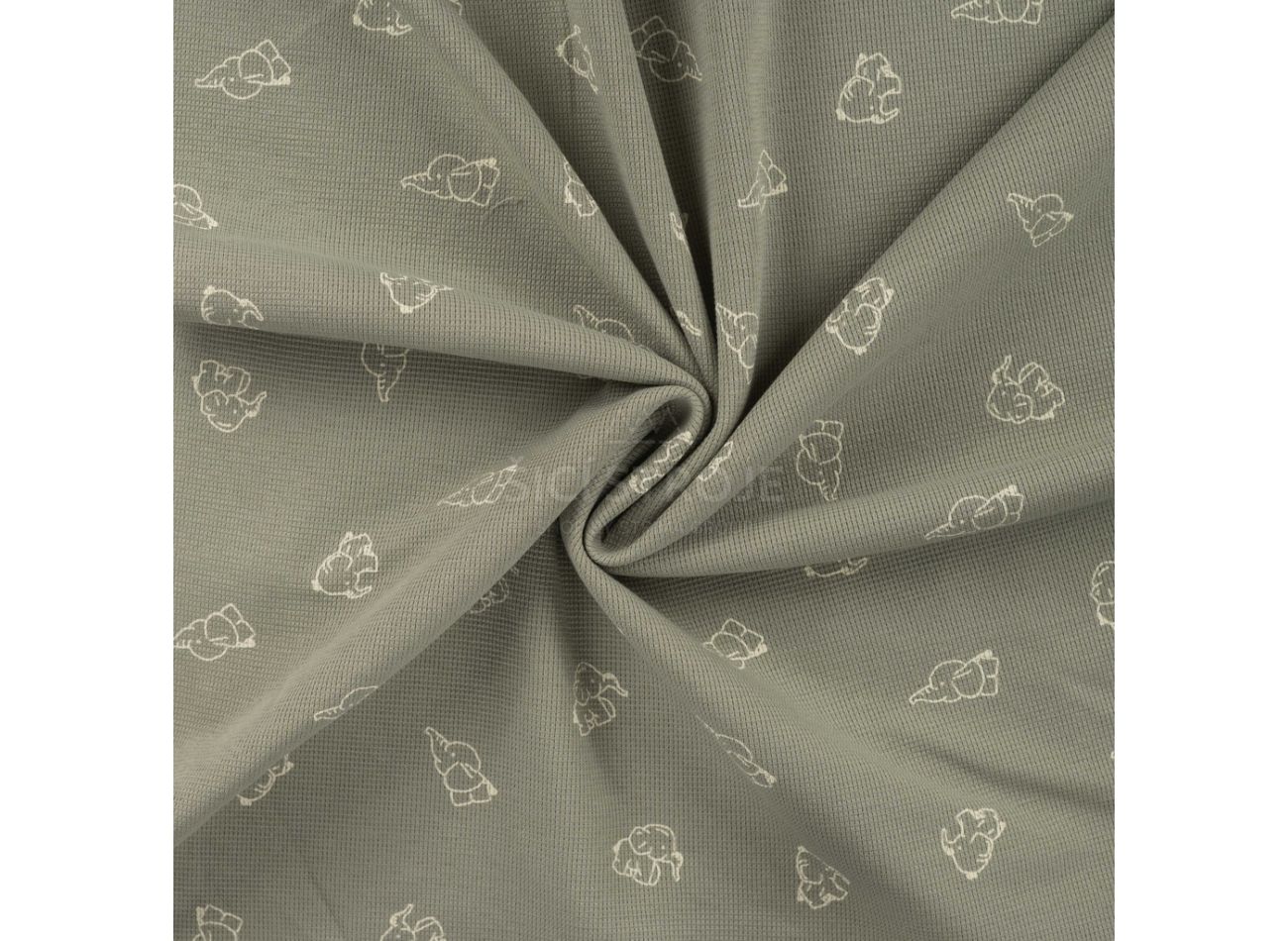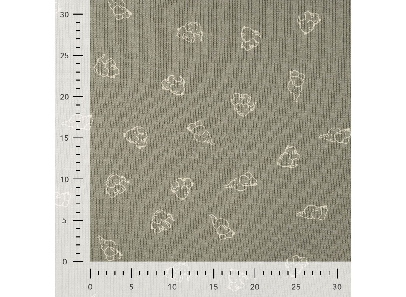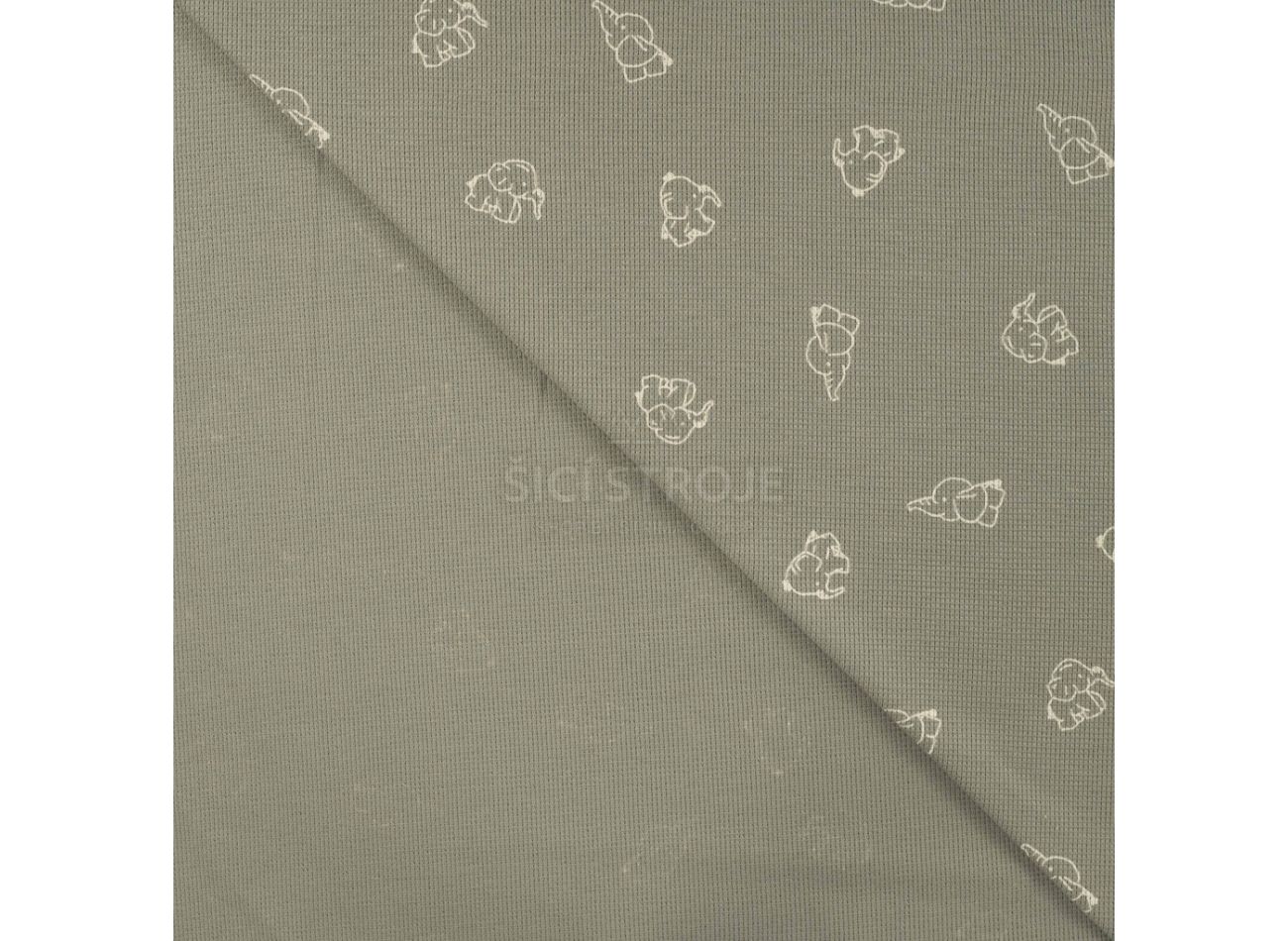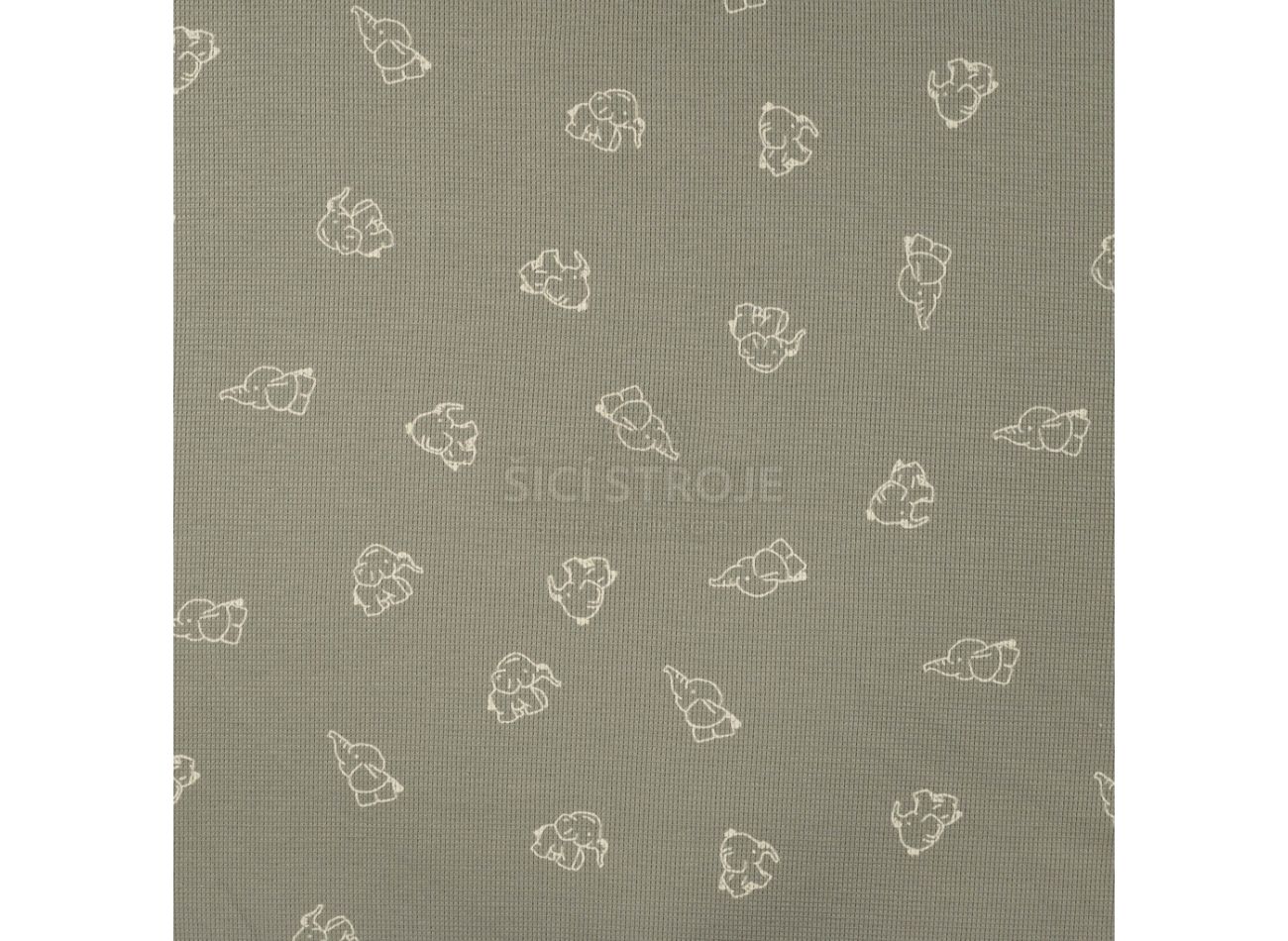 Cutie Waffle Print, 95% bavlna, 5% elastan, minimálna šírka 130 cm, gramáž 225 g/m2, vzor elephants, farba khaki