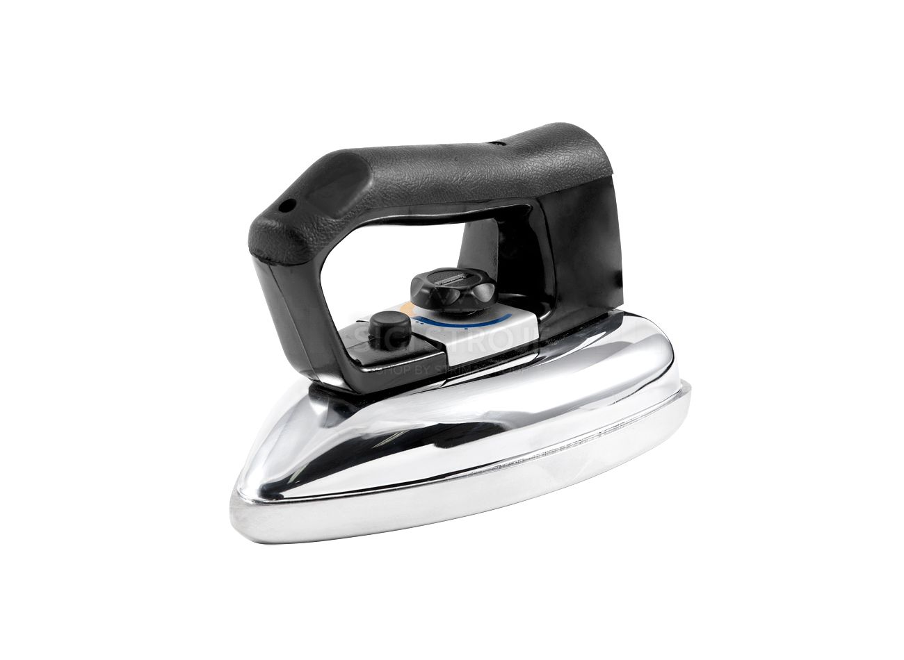 Ergonomická, priemyselná žehlička na suché žehlenie (bez pary) so špeciálnou oblou špicou. Perfektný na žehlenie podšívok. Vyhrievanie 900 W (230 V, 50 Hz), kvalitné držadlo, bimetalický termostat teploty (max. 215 ° C), chránič ruky proti popáleniu, váha 1,7 kg.