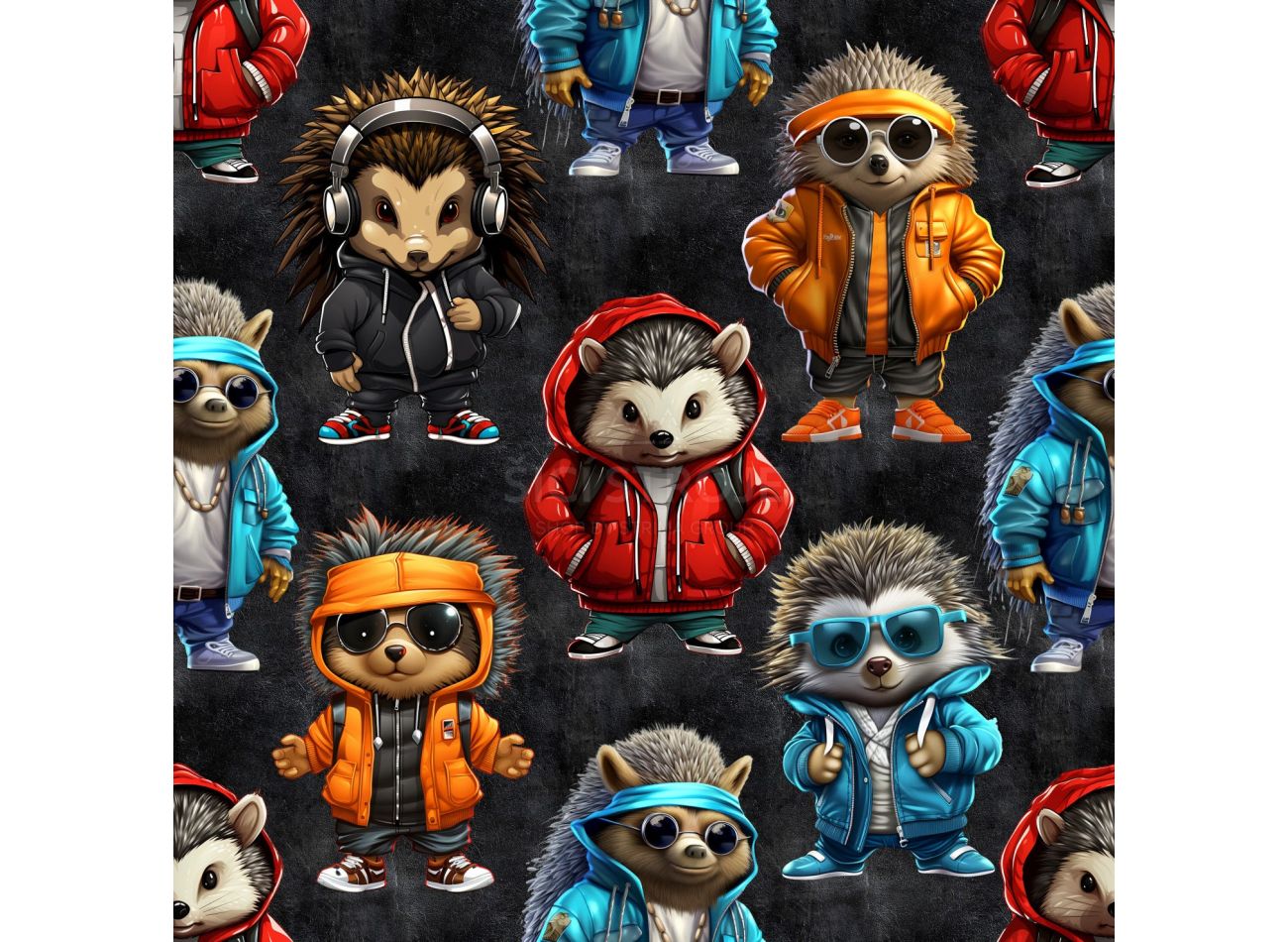 French Terry Digital Print, 95% bavlna, 5% elastan, minimálna šírka 145 cm, gramáž 230 g/m2, vzor cool hedgehogs, farba black