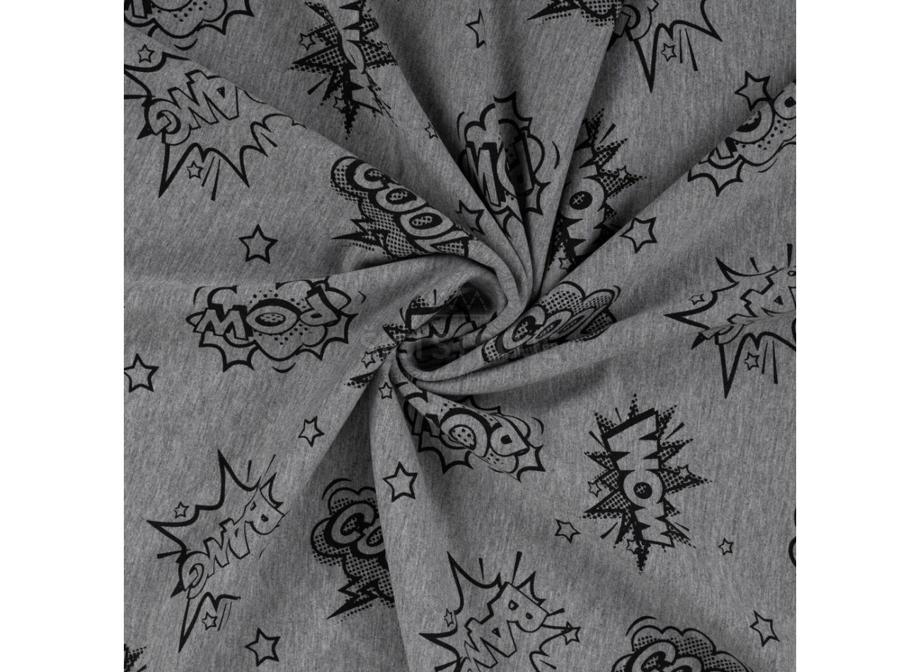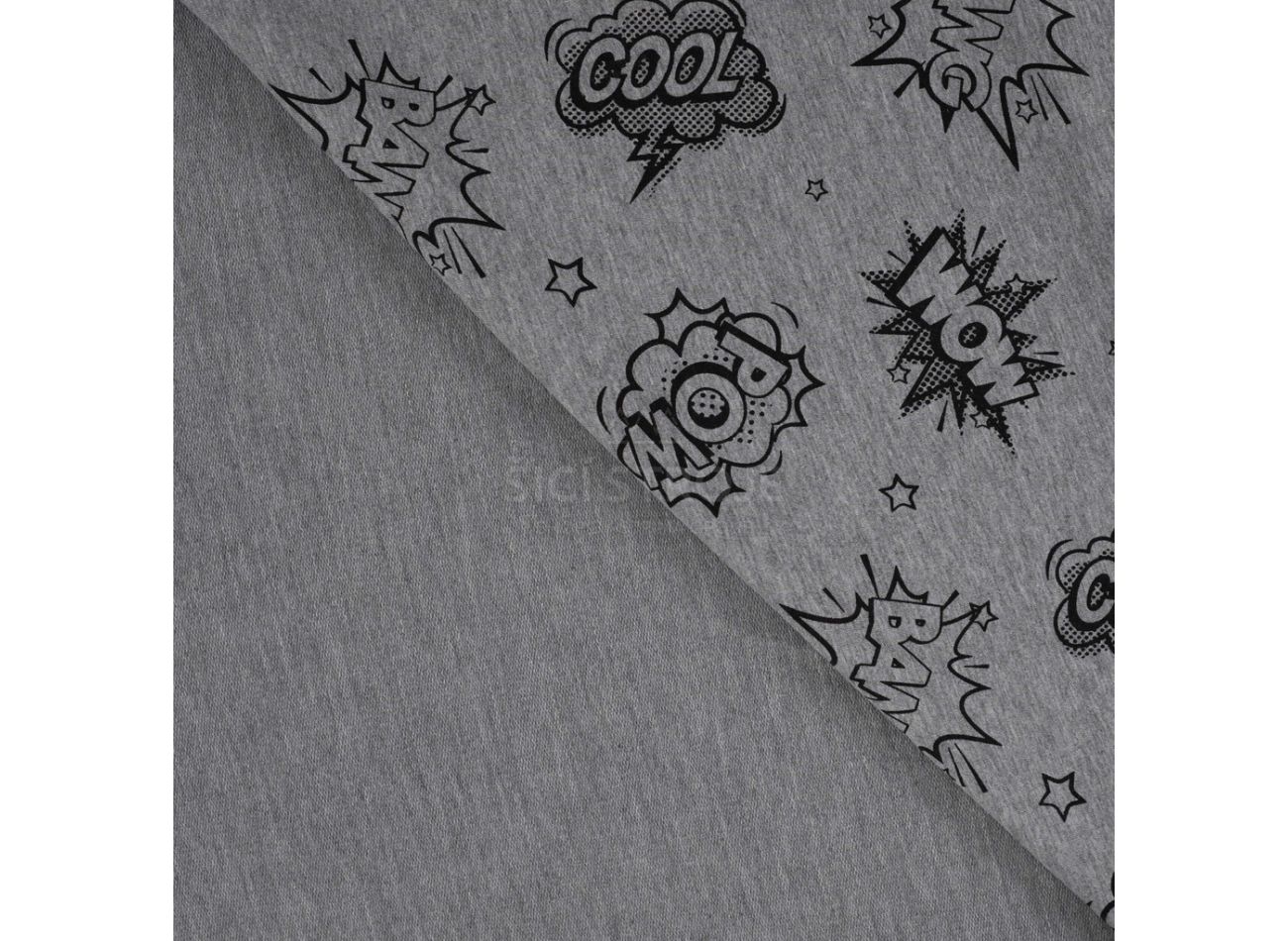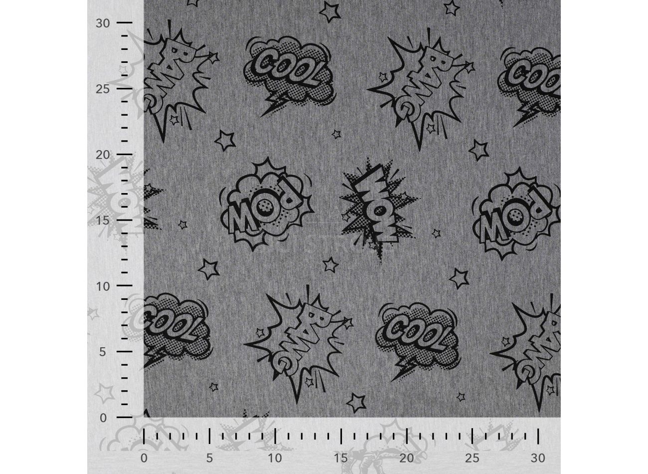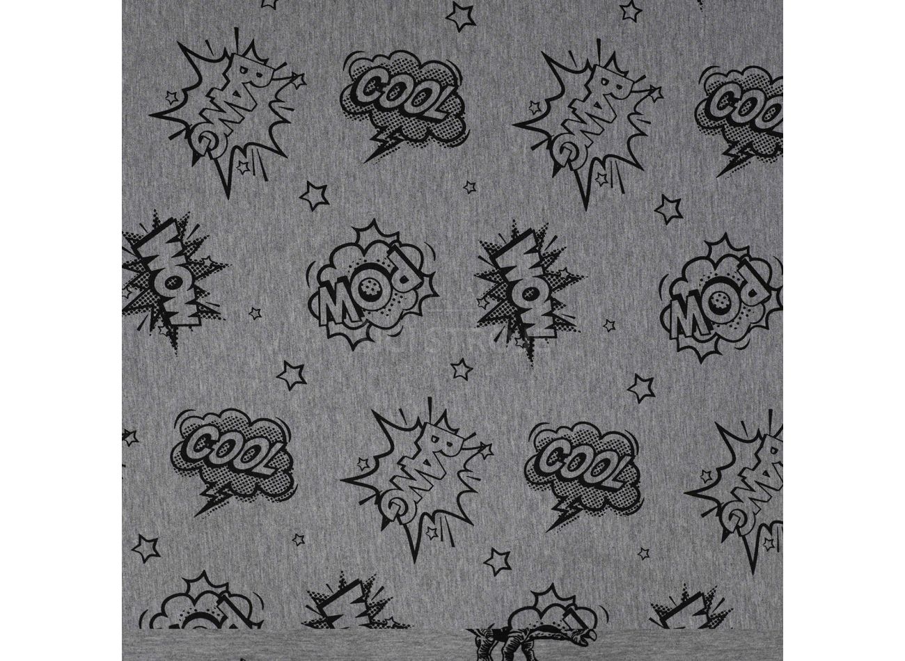 French Terry Melange Print, 60% polyester, 35% bavlna, 5% elastan, minimálna šírka 150 cm, gramáž 230 g/m2, vzor cartoon, farba light grey melange