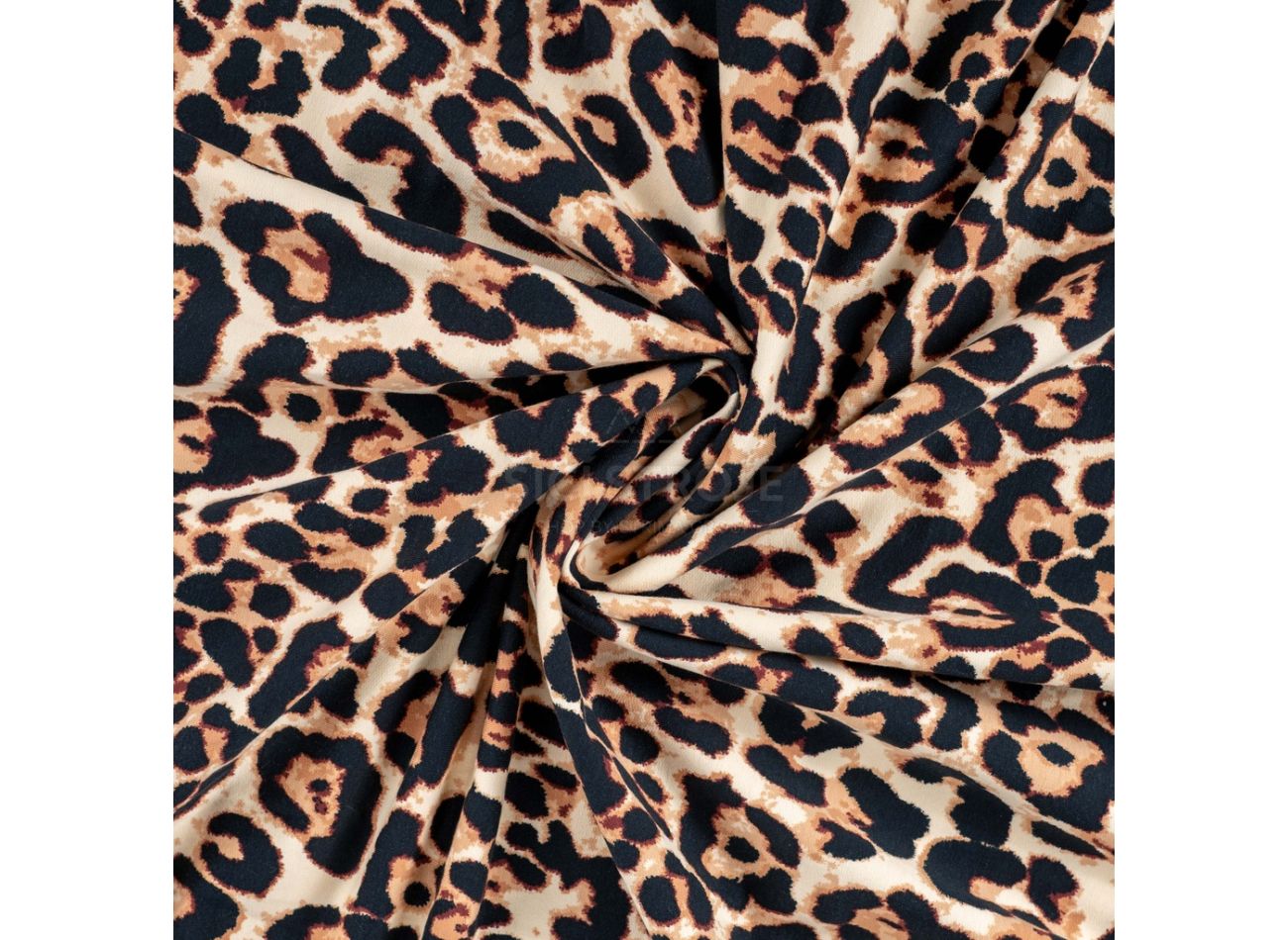 French Terry Print Brushed - Big Leopard, Caramel
