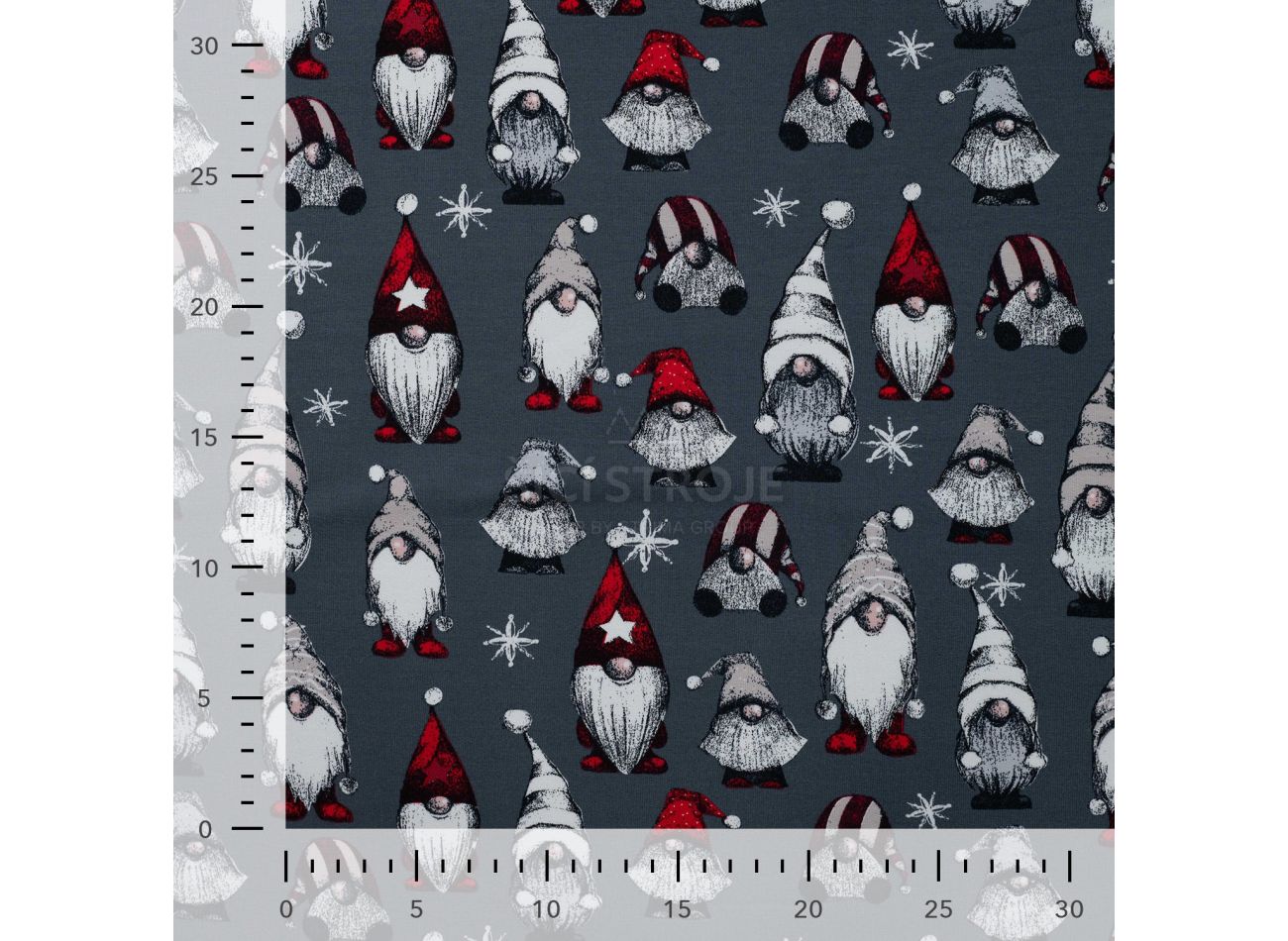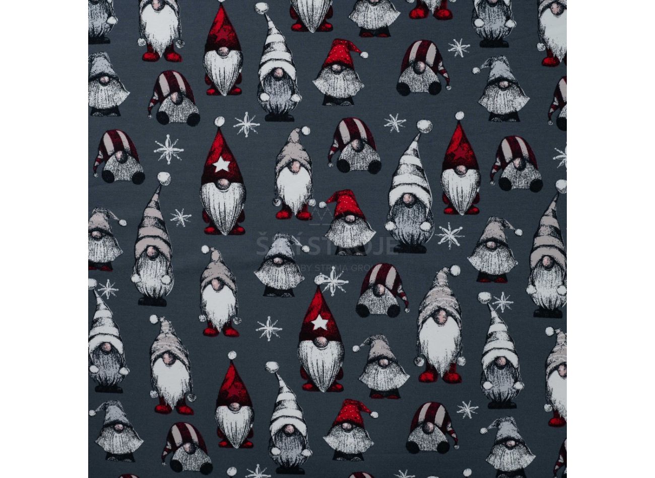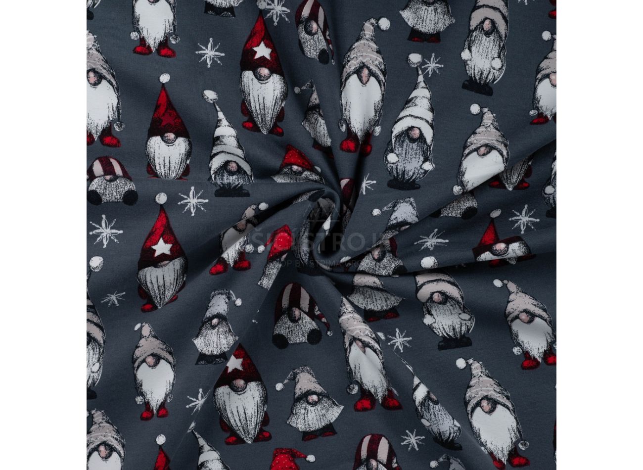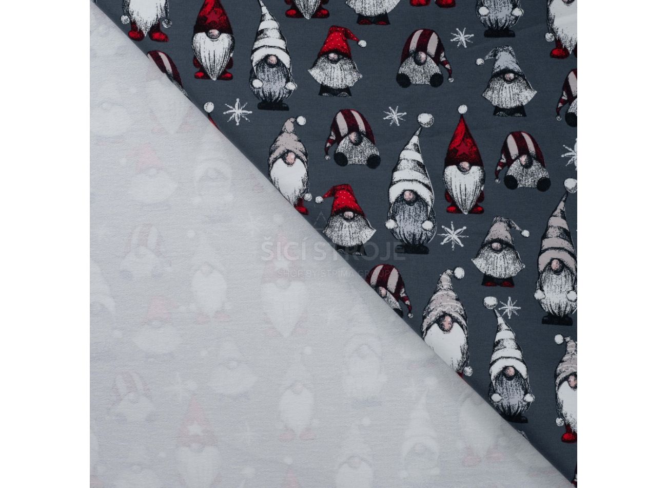 French Terry Print Brushed, 95% bavlna, 5% elastan, minimálna šírka 140 cm, gramáž 230 g/m2, vzor vintage gnomes, farba grey